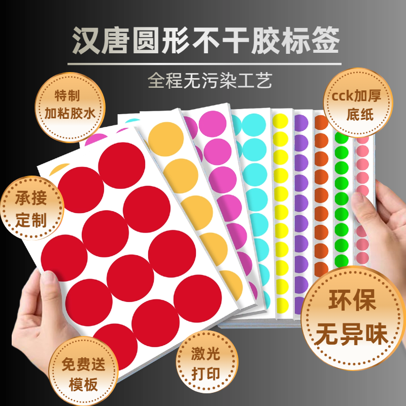 汉唐A5不干胶标签纸圆形标签贴纸手写数字定制检验GP工厂月份标签空白口取纸化妆品分类标记4mm圆点标签贴纸