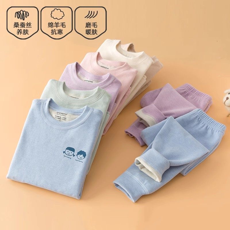 儿童秋衣秋裤婴儿德绒保暖内衣套装秋冬季宝宝睡衣套装羊毛蚕丝