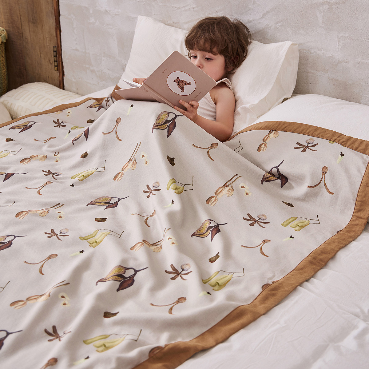 威尔贝鲁婴儿盖毯春夏季幼儿园被子竹棉纱布盖巾儿童竹纤维毯子薄