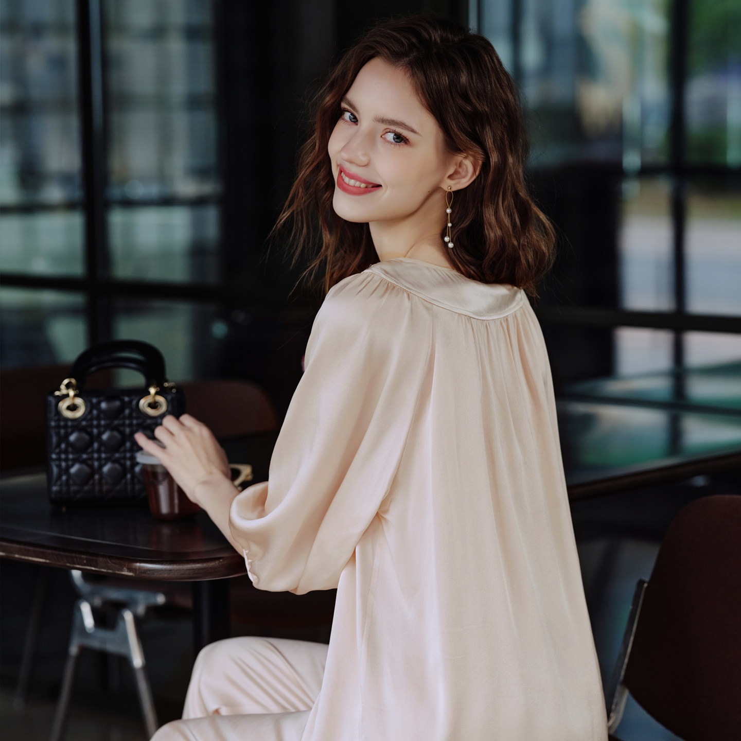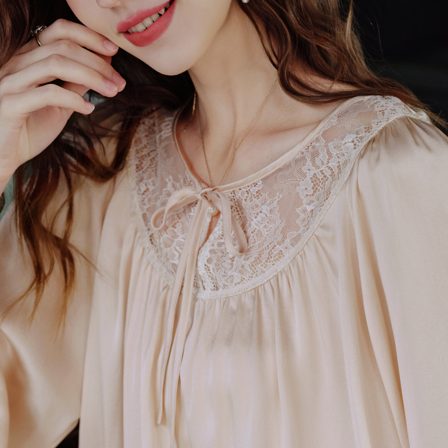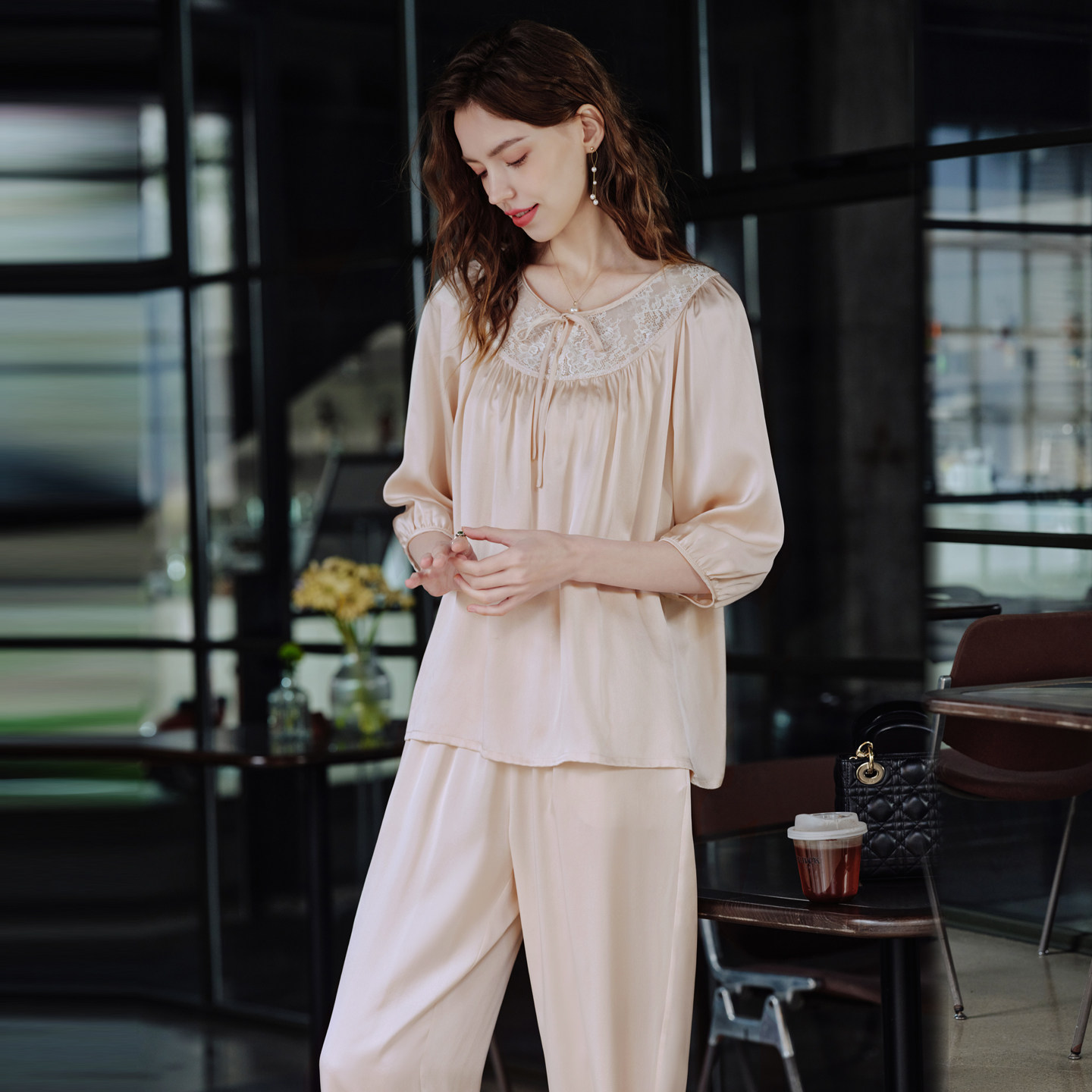 美标新款真丝睡衣套装女春夏100%桑蚕丝蕾丝凉感丝绸可外穿家居服