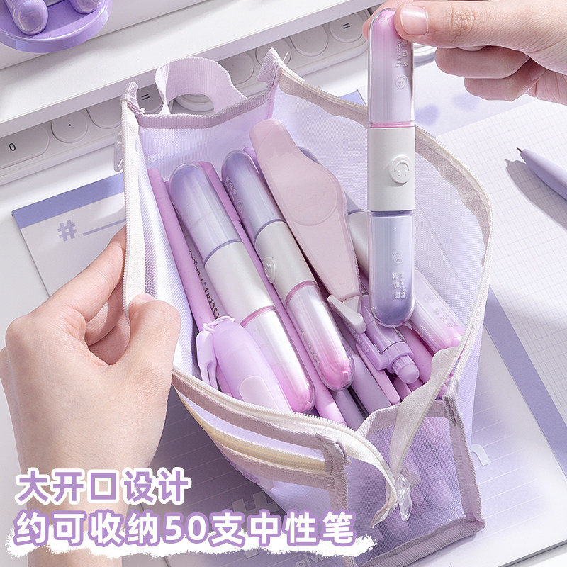 三角网纱笔袋大容量学生文具袋透明高颜值铅笔袋考试专用中高考场学习用品收纳袋简约初中生立体便携文具盒