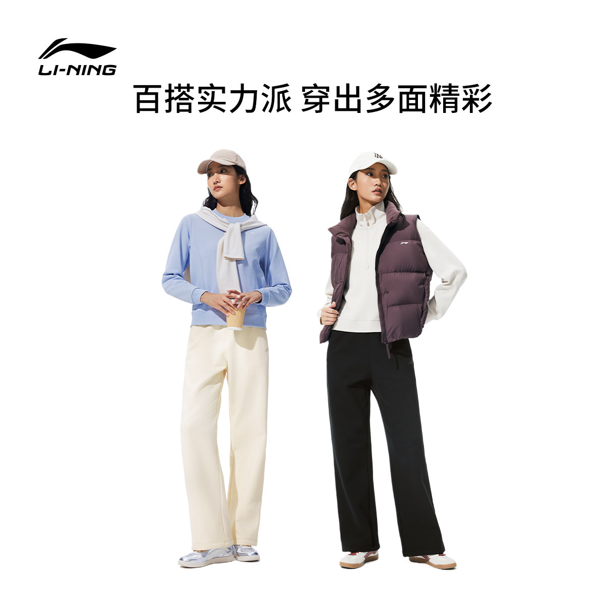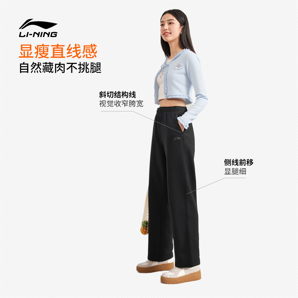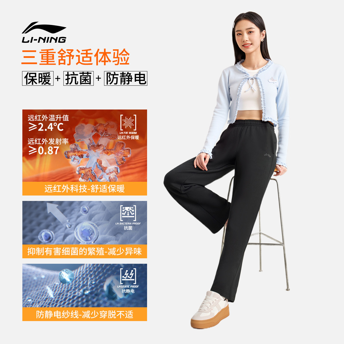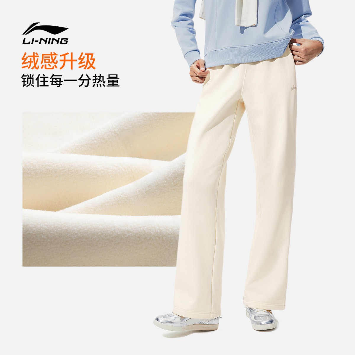 李宁热力裤丨卫裤女新款休闲加绒裤子冬季宽松直筒针织运动长裤