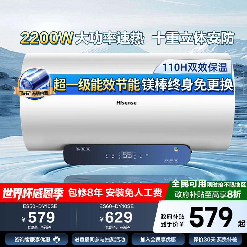 海信60升电热水器一级能效家用洗澡卫生间出租速热换新补贴DY10SE