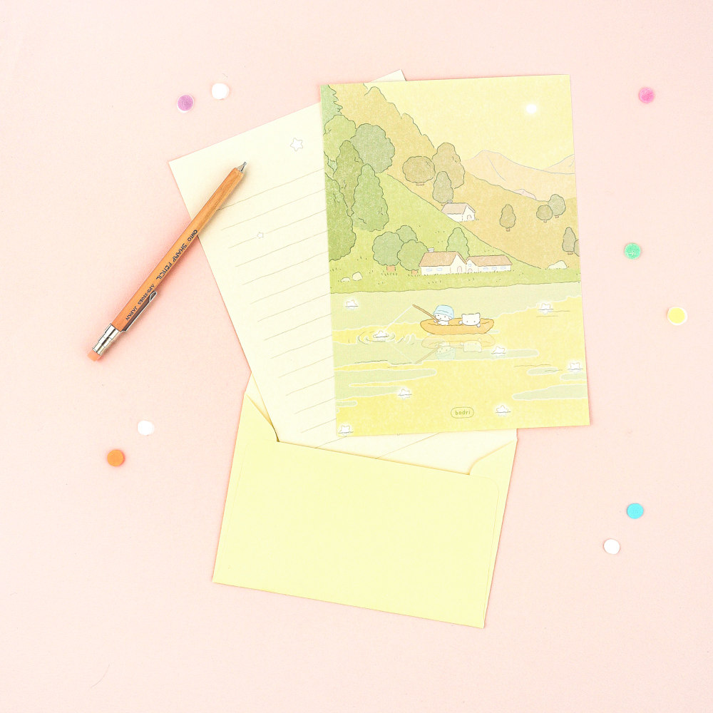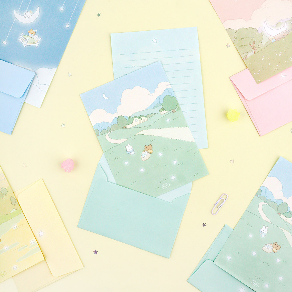 韩国DASH AND DOT可爱全彩插图迷你信纸信封套装礼物留言情书信笺