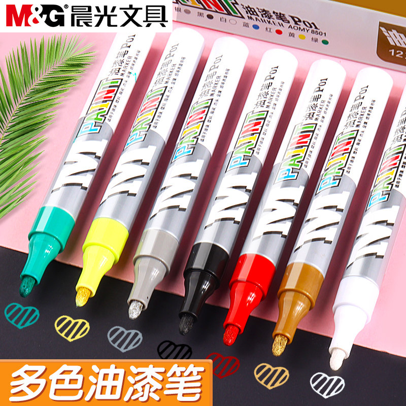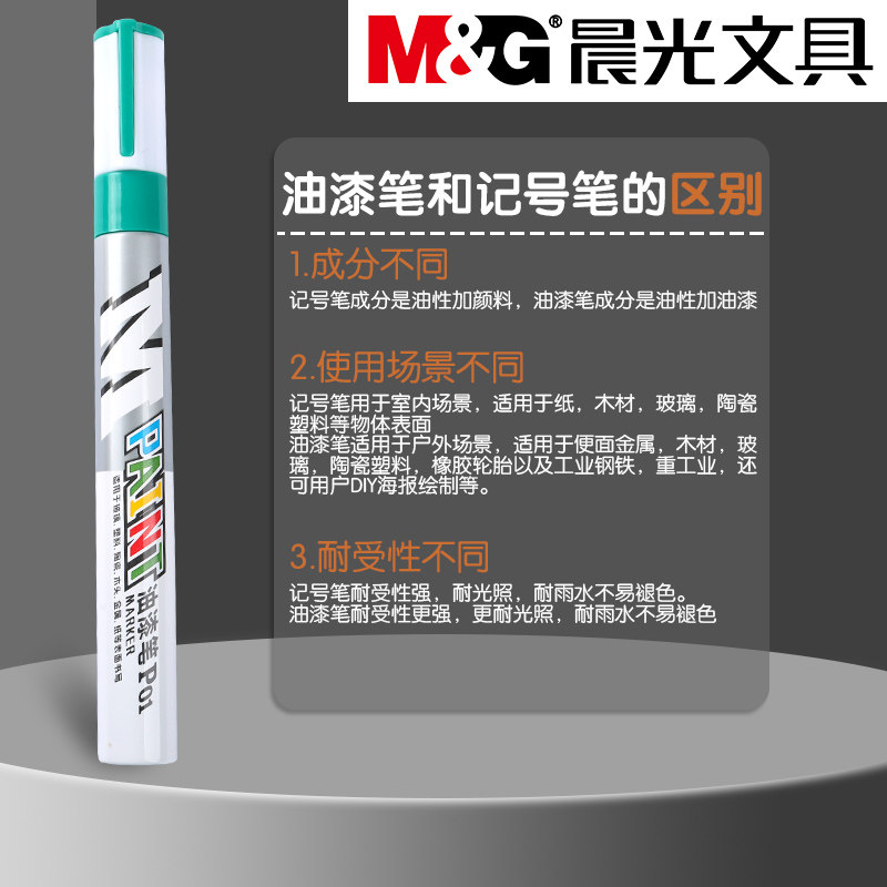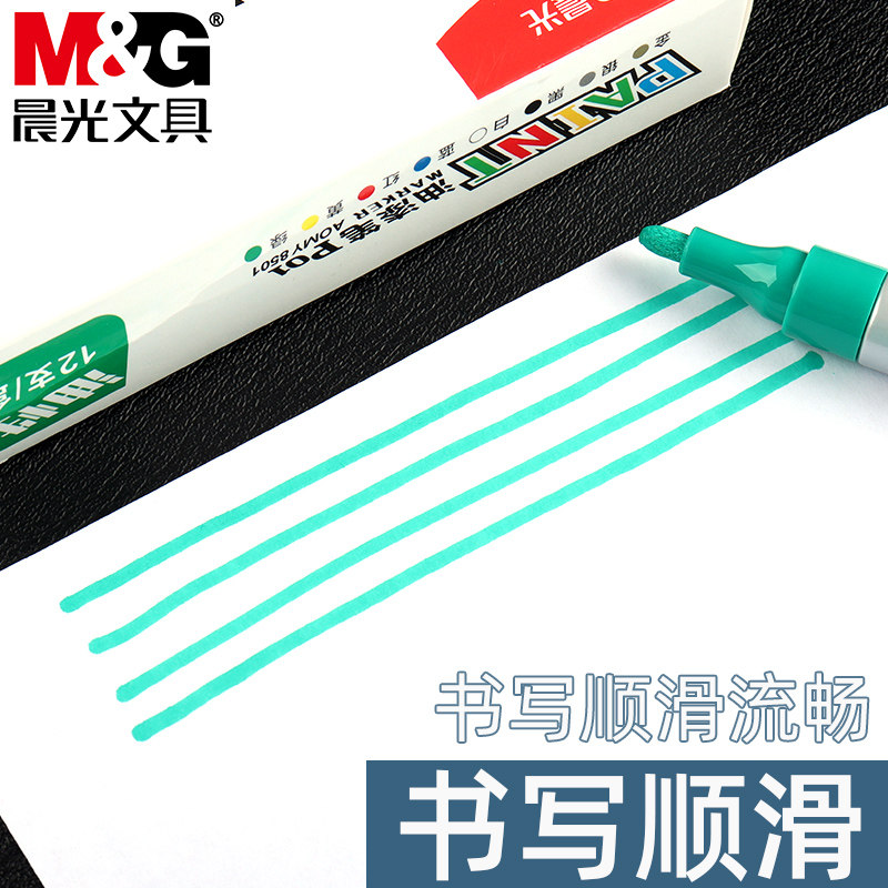 晨光蓝色油漆笔油性记号笔防水防油不易掉色工业补漆笔适用金属玻璃塑料陶瓷木头划痕修复补色笔涂鸦笔