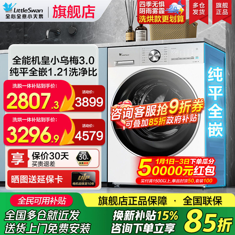 小天鹅小乌梅3洗衣机家用全自动水魔方12KG大容量滚筒洗烘干一体
