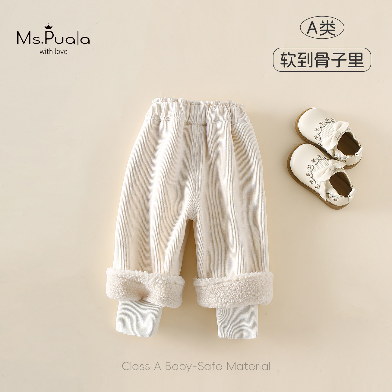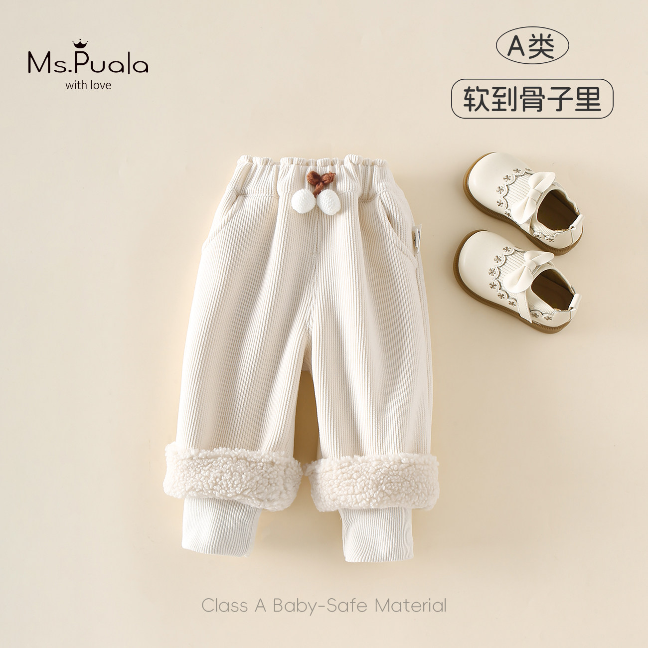 Ms.Puala女童宝宝加绒休闲裤秋冬韩系裤子宽松加厚束脚长裤防风