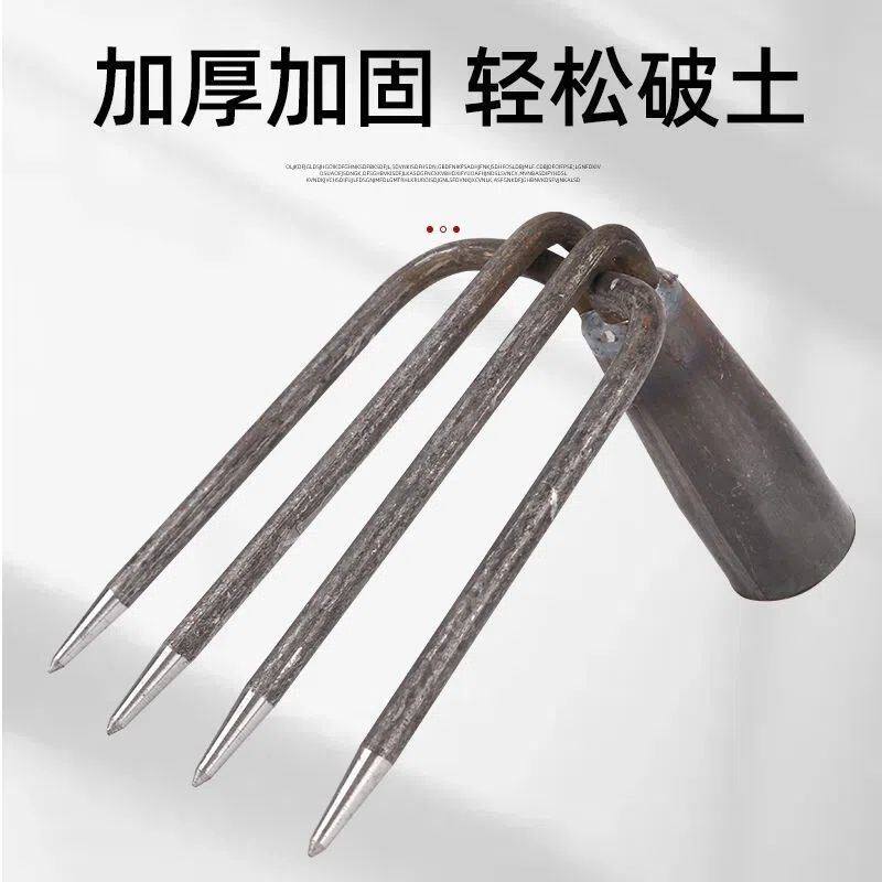 农用翻地松土耙子全钢二齿三齿耙子园艺挖地两齿镐老式锰钢锻打齿