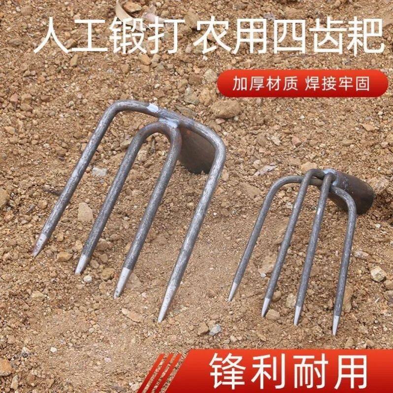 新款特厚五齿耙松土钢耙刨花生多齿耙子开荒翻地农具农用四齿钉耙