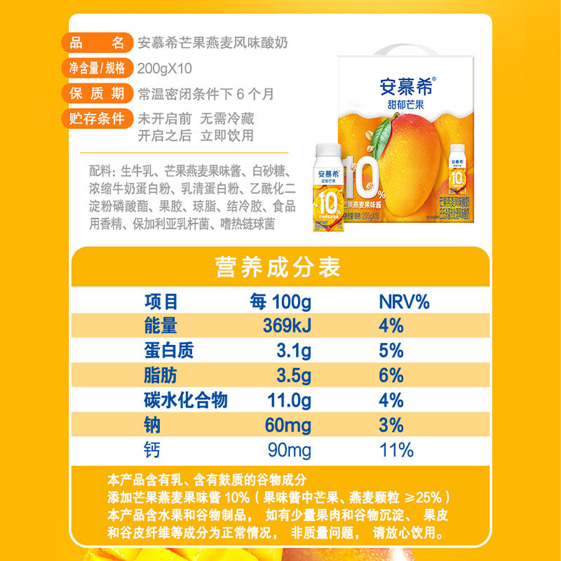 【正品】安慕希伊利芒果燕麦风味酸奶