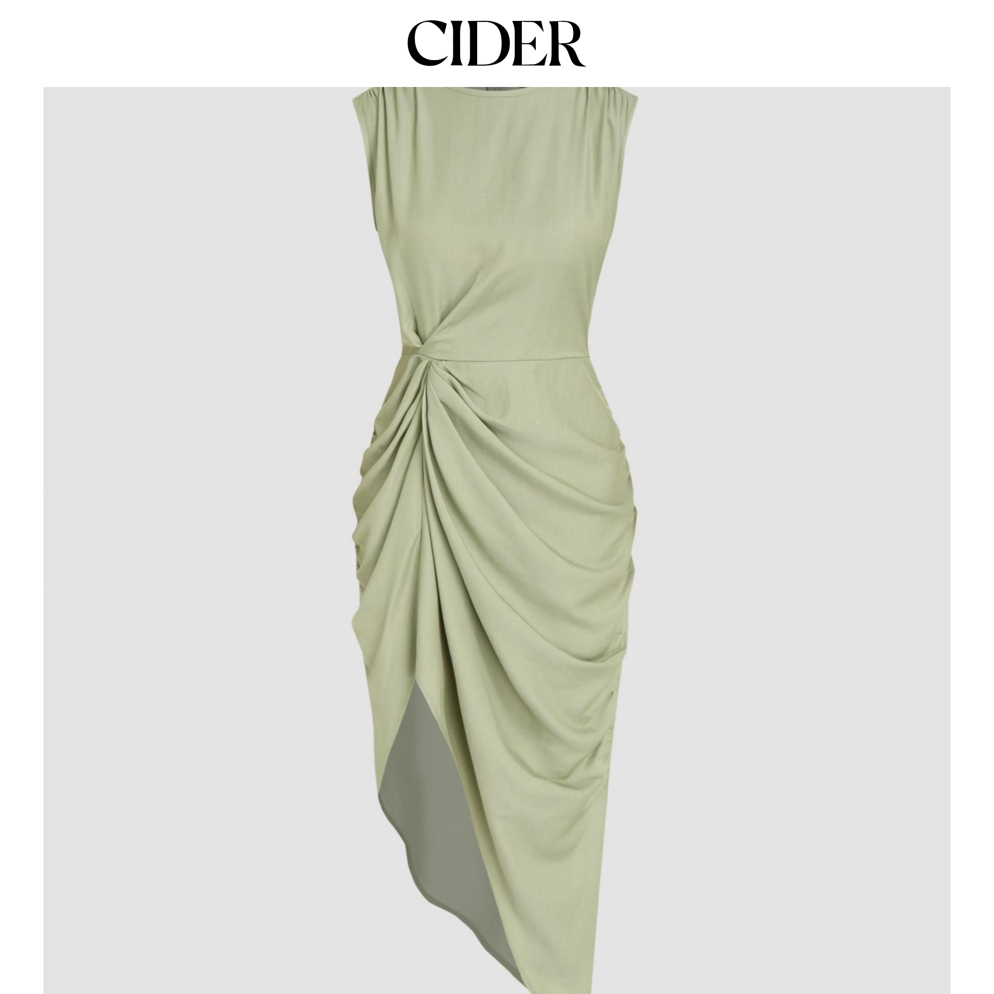 CIDER 夏季女装船领不对称下摆褶皱中长连衣裙107622527
