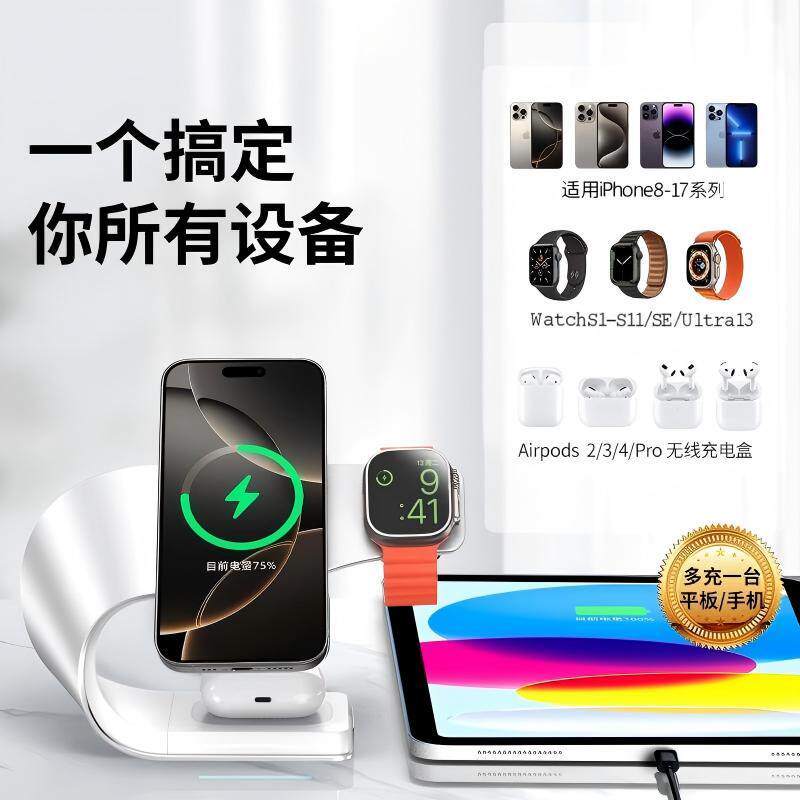 四合一无线充电器快充适用MagSafe苹果17手表apple watch支架iwatch桌面充电底座airpods金属耳机三合一磁吸