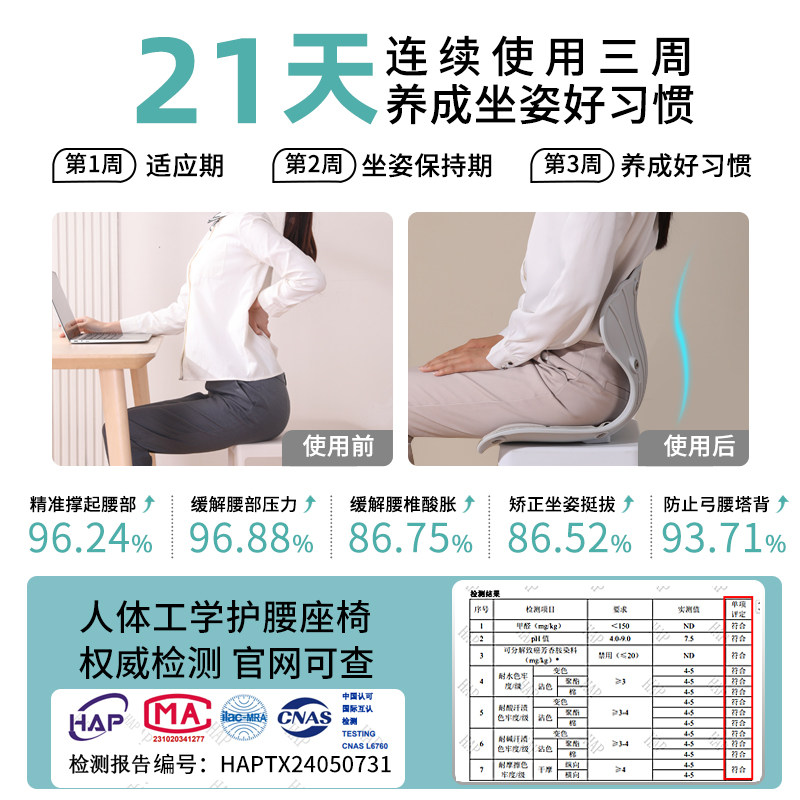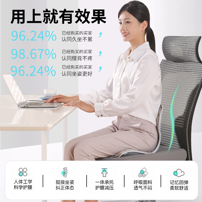 加厚护腰矫姿座椅人体工学椅垫靠背办公久坐不累神器学生护脊坐垫