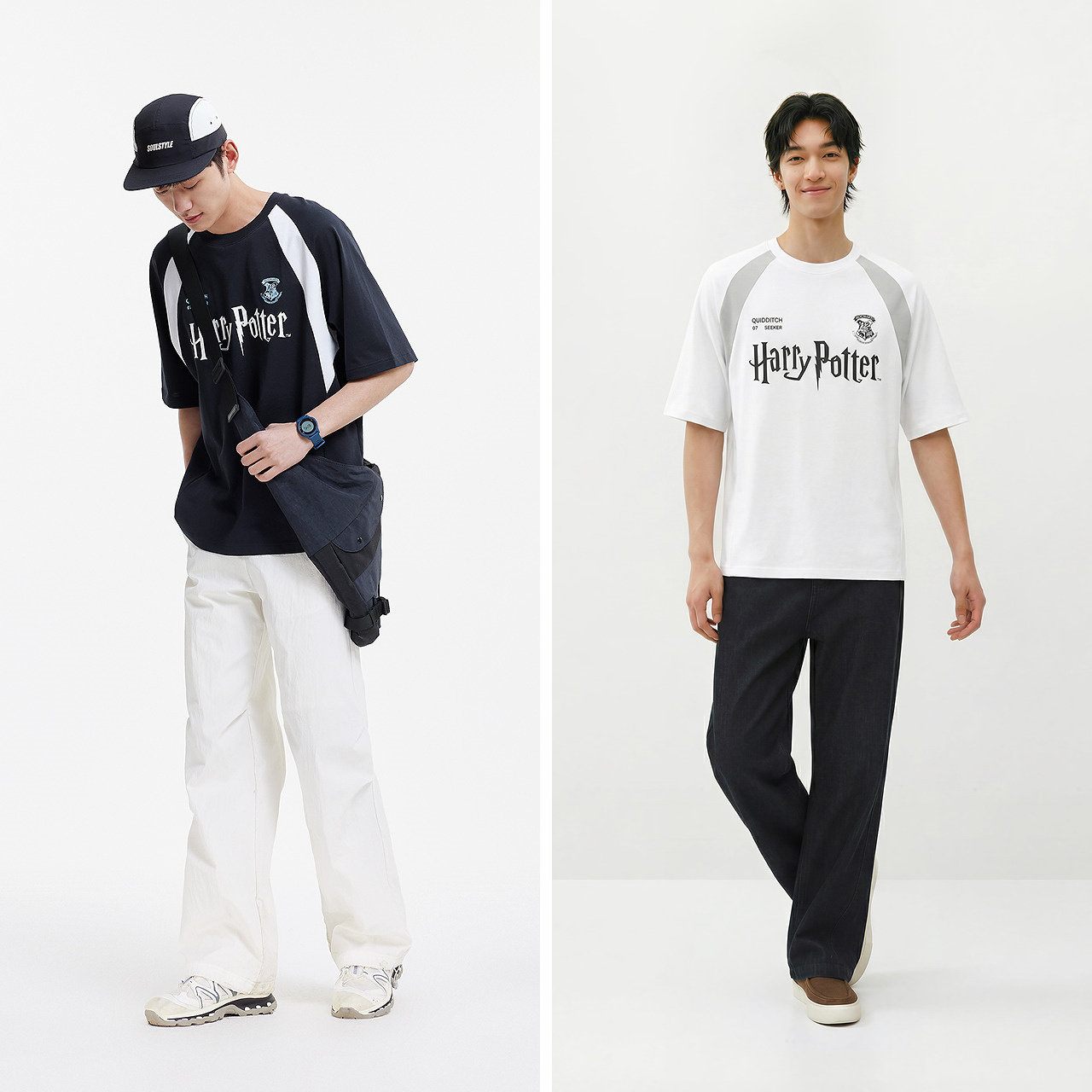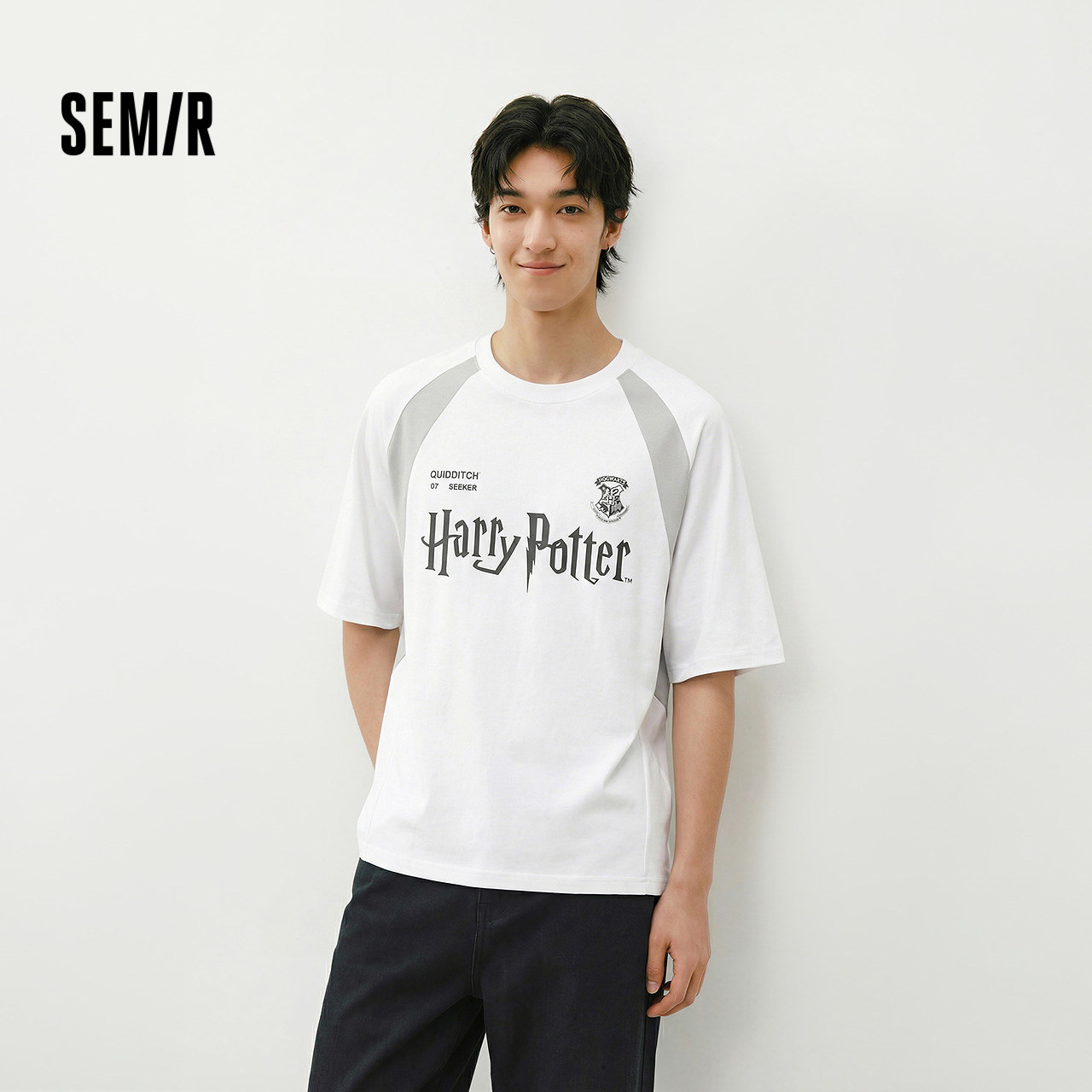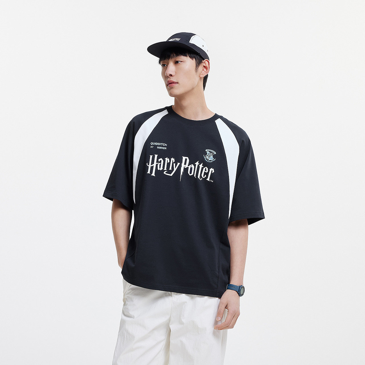 森马哈利波特联名短袖T恤男夏纯棉球服风针织衫宽松撞色印花上衣