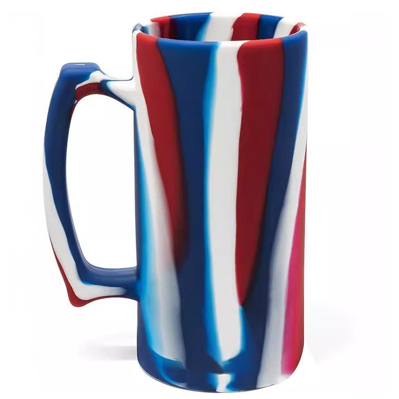 亚马逊新品硅胶啤酒杯28oz大容量带把手可印logo家用食品级硅胶杯