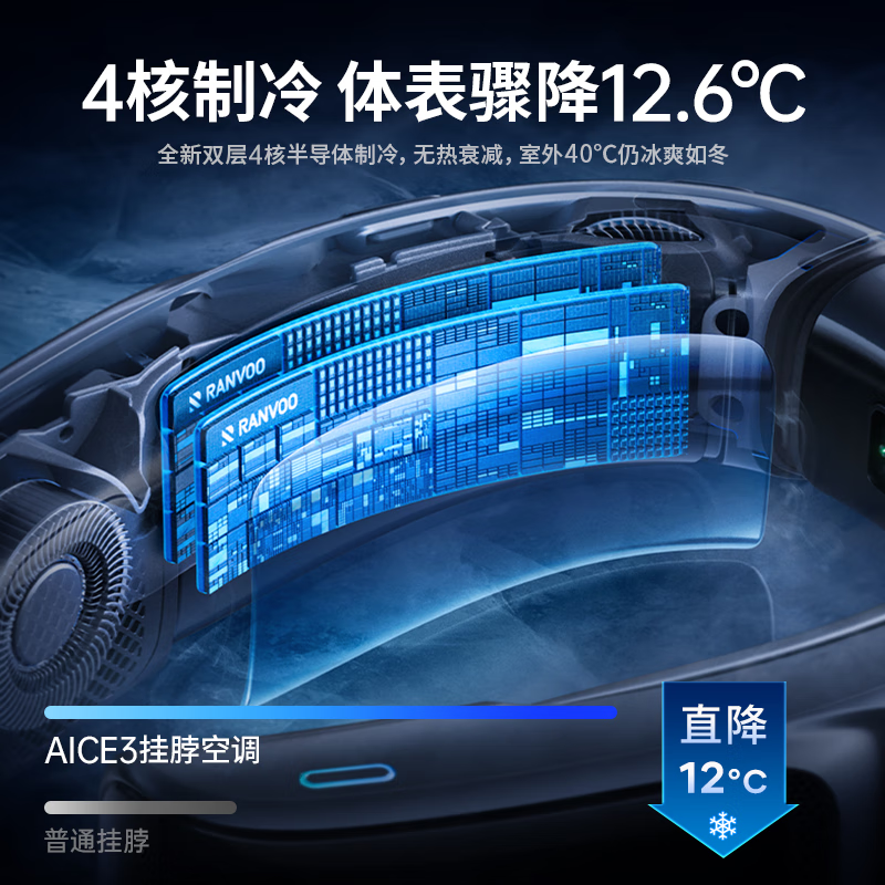 锐舞颈部挂脖制冷智能随身穿戴空调风扇户外便携半导体降温神器