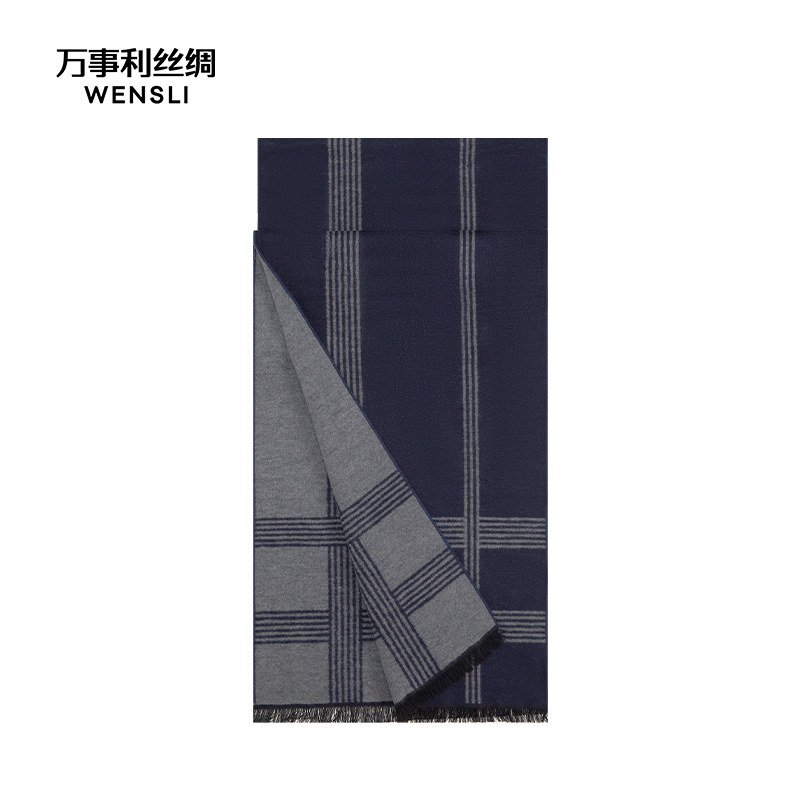 万事利高端真丝绒围巾冬季商务休闲保暖穿搭披肩男款-星辉
