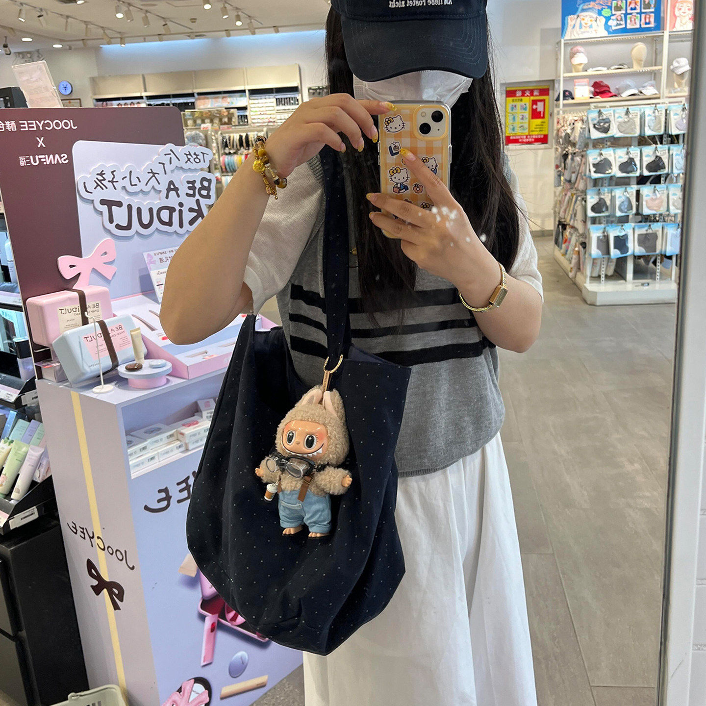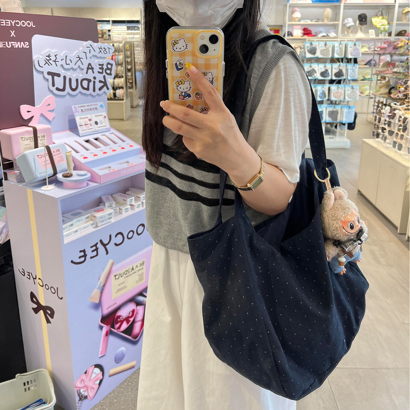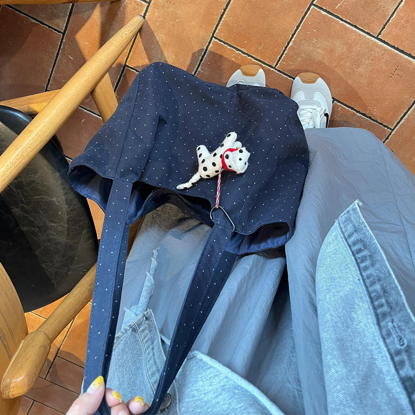 韩系波点帆布包2025新款慵懒风黑色百搭通勤布袋单肩托特包大容量