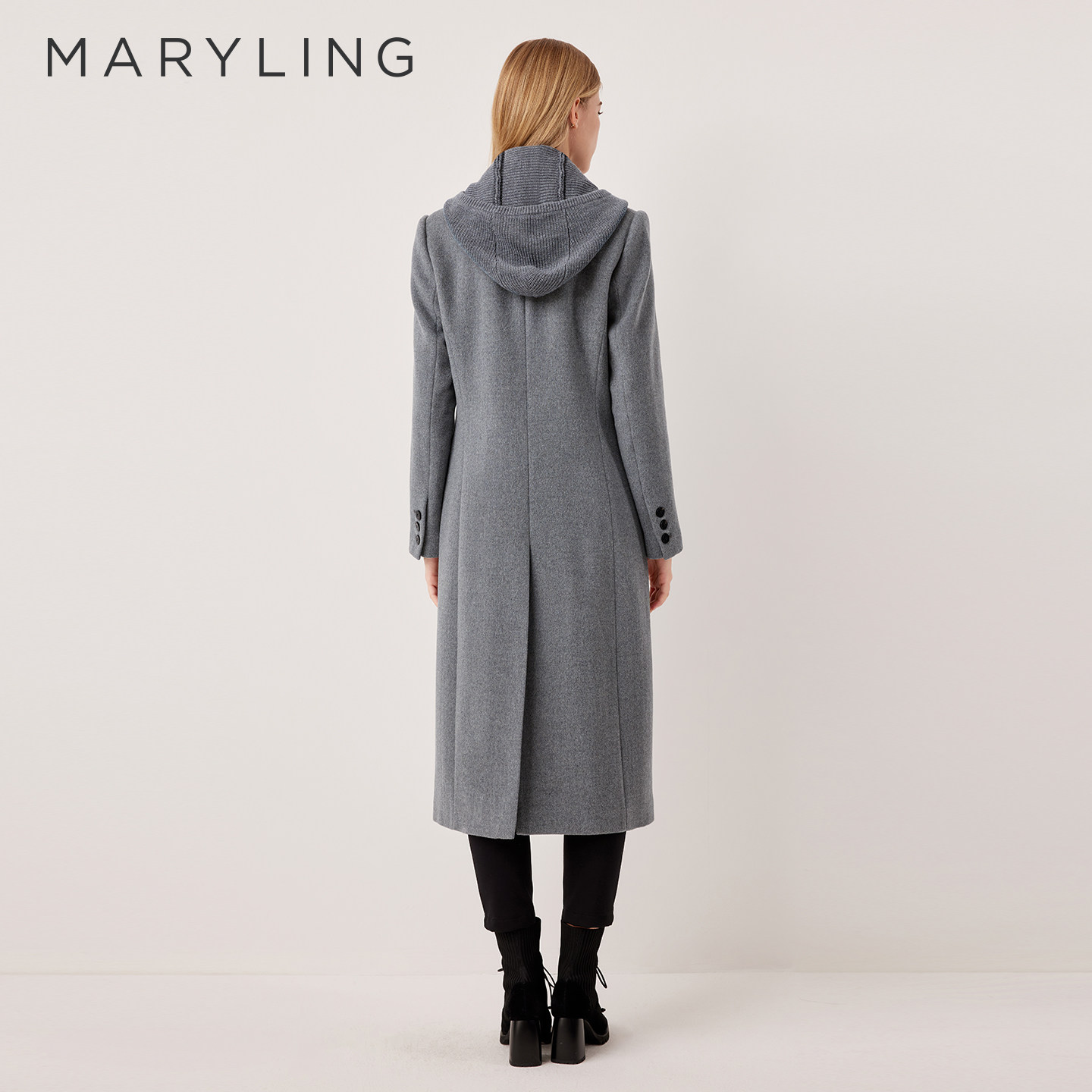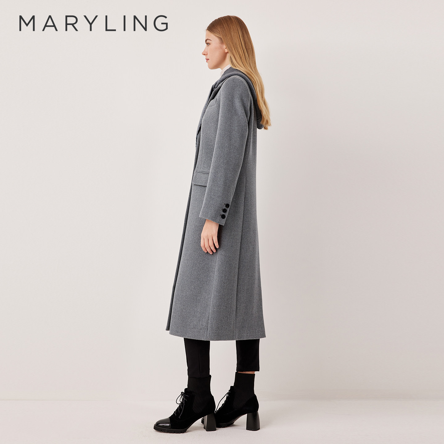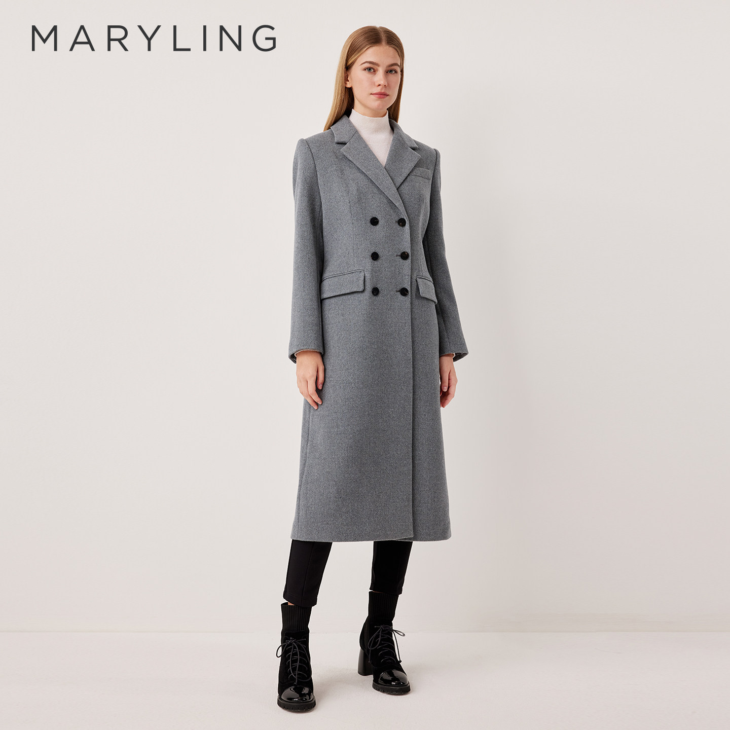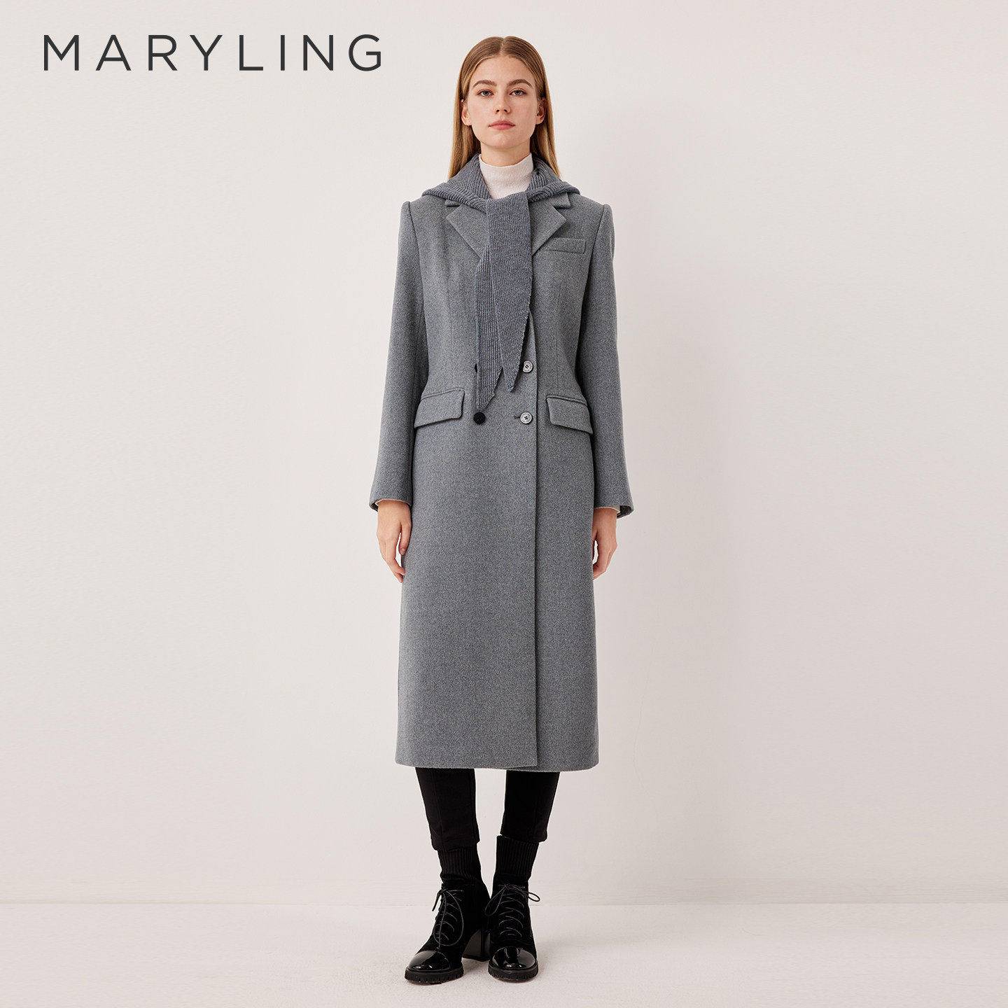 MARYLING玛俪琳2025冬季新品简约高级灰翻领长款大衣A1FHW93110