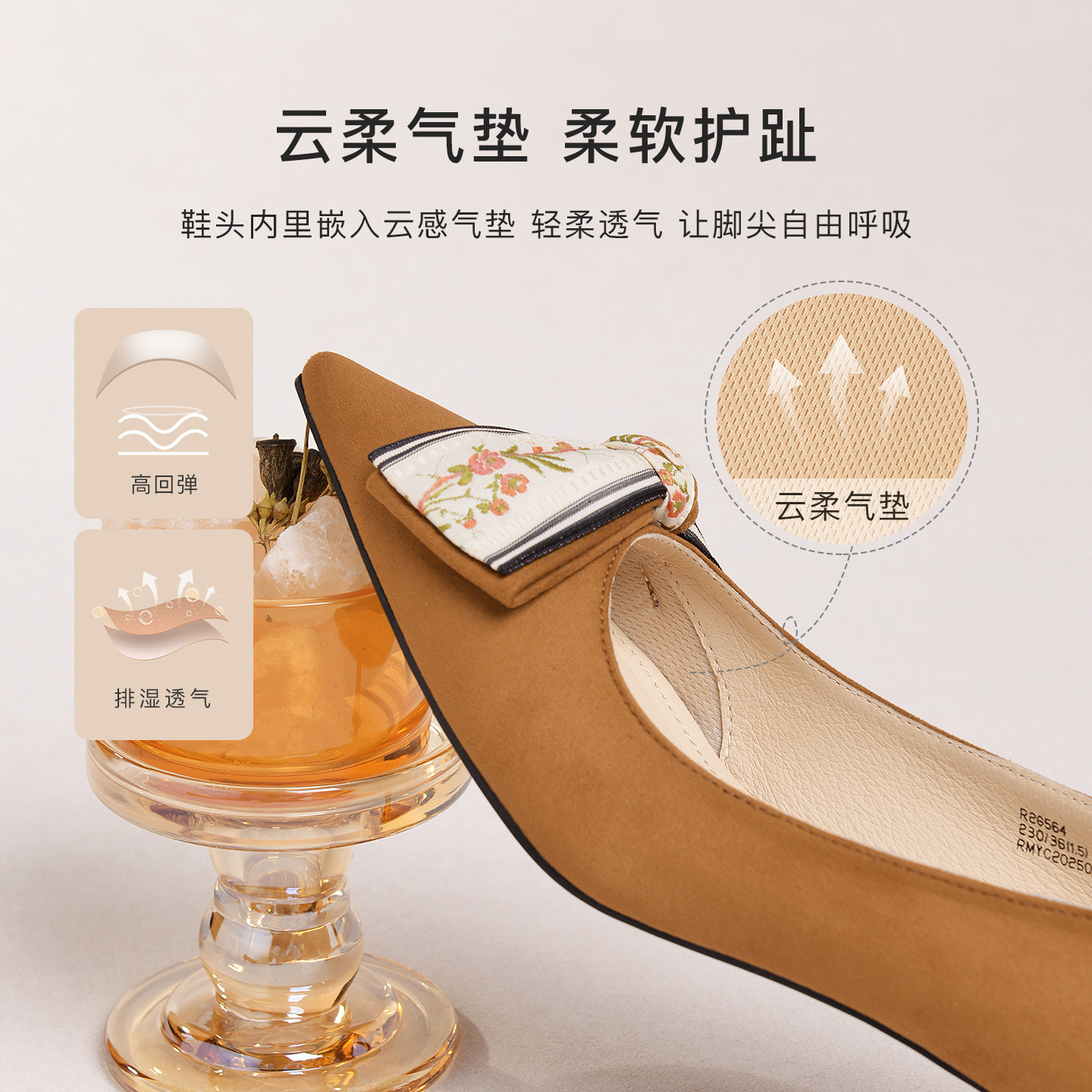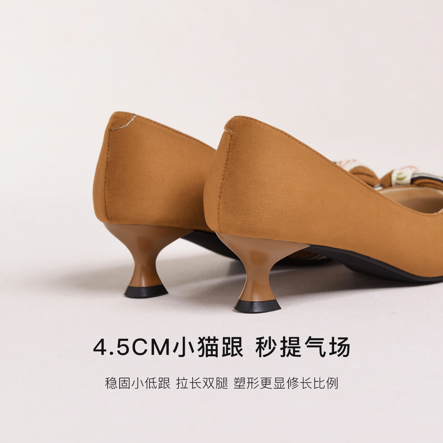 【明星同款|静音系列】千百度练习曲裸色高跟鞋真皮通勤法式单鞋