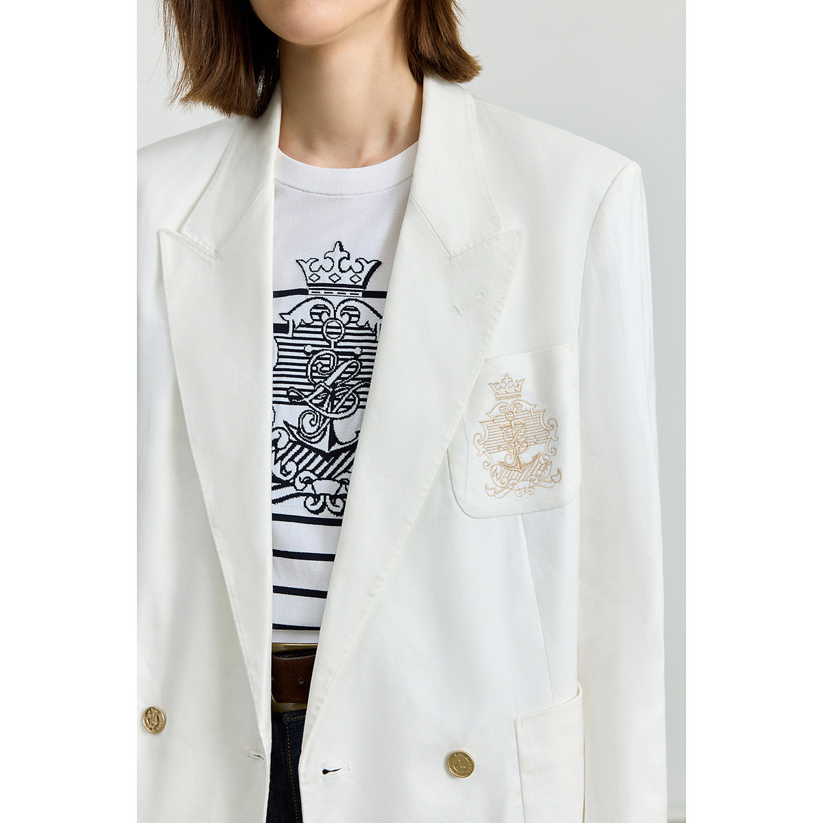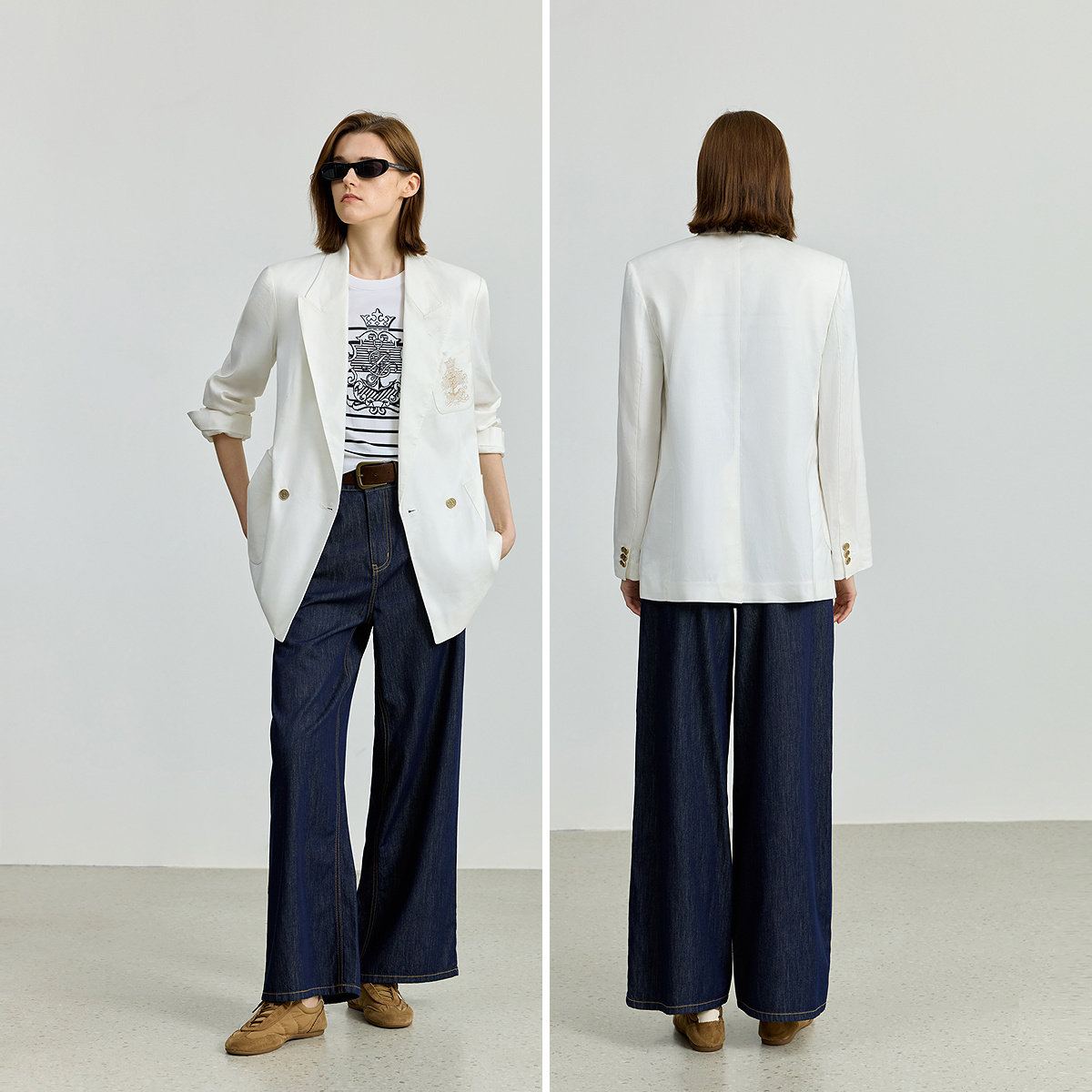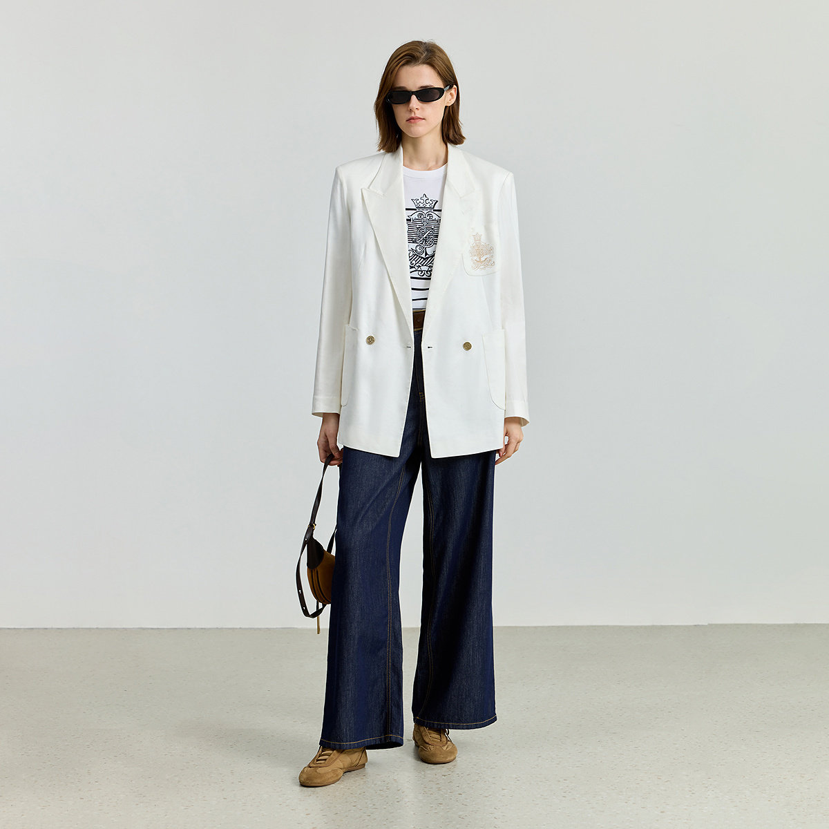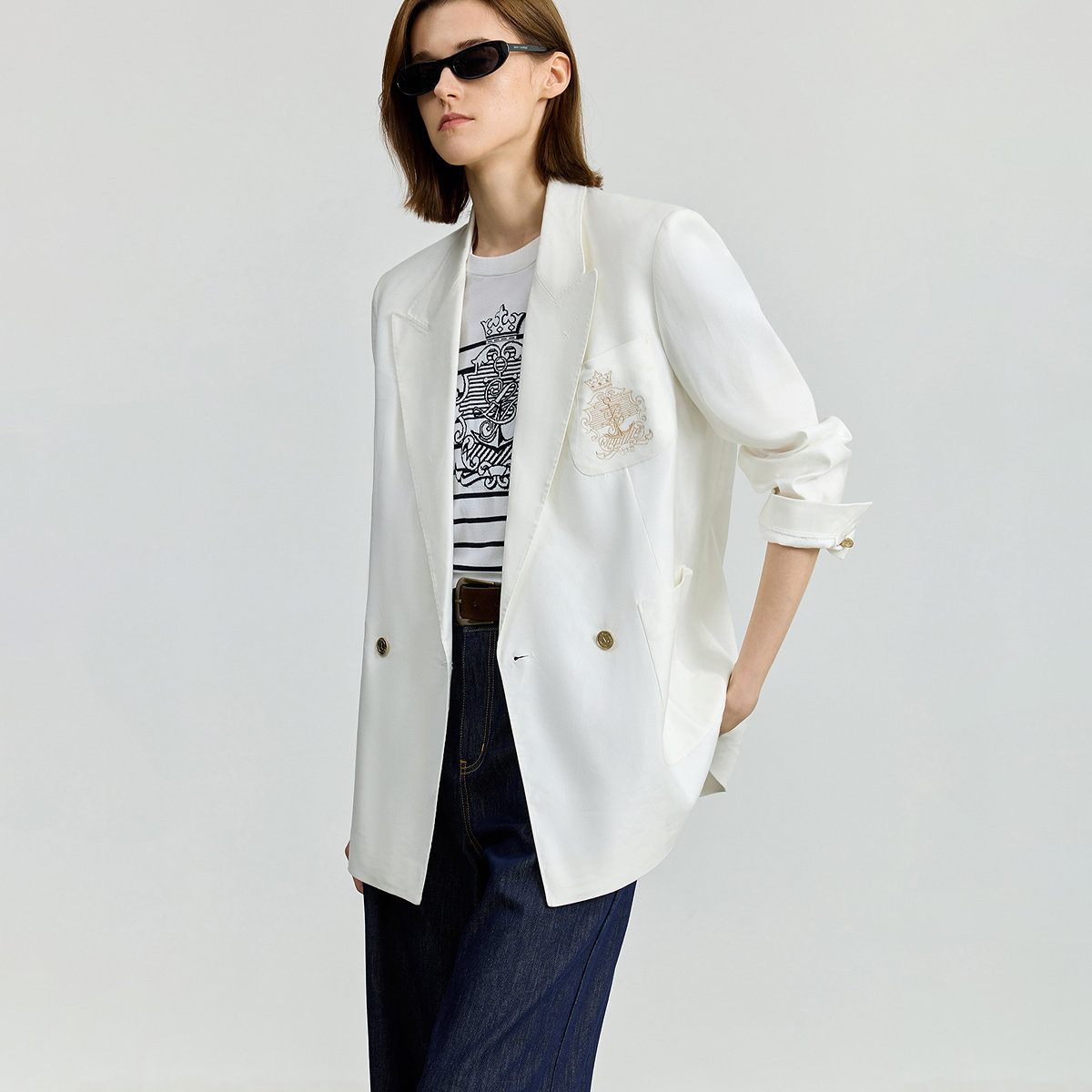 【商场同款】LILY2025秋新款莱赛尔亚麻混纺老钱风白色西装外套女