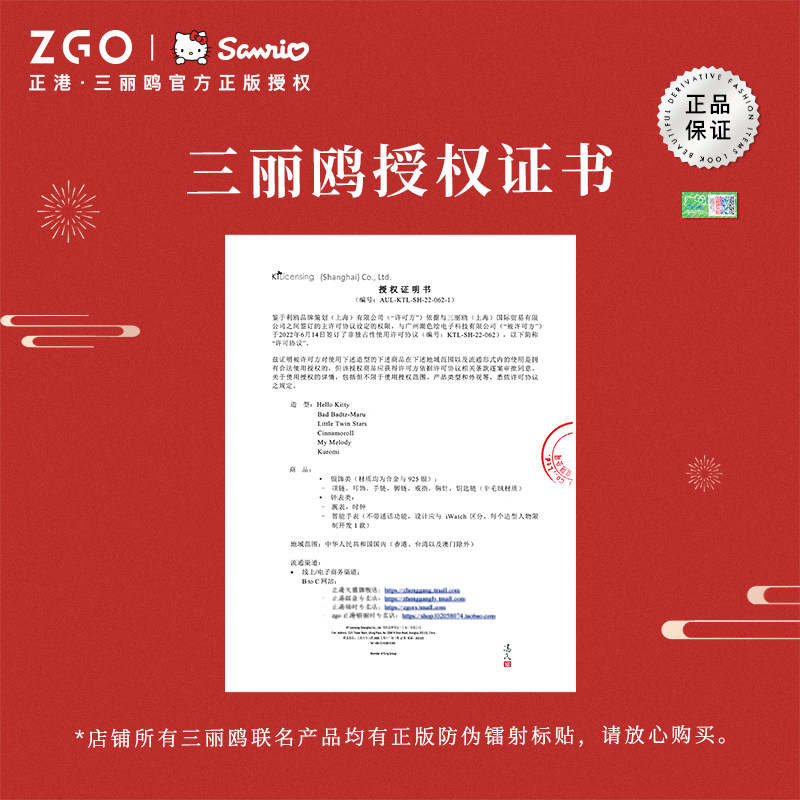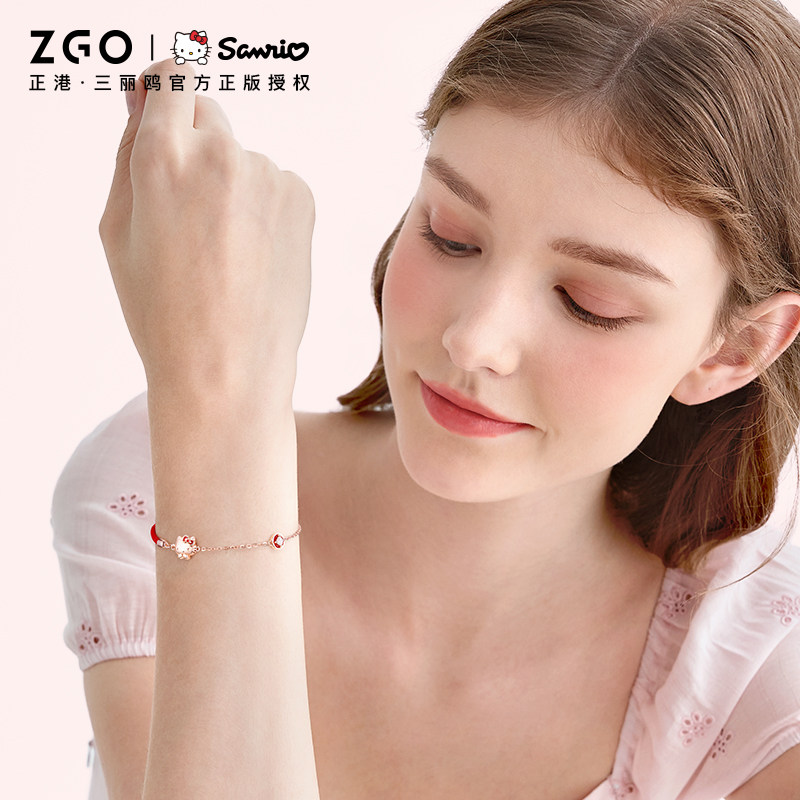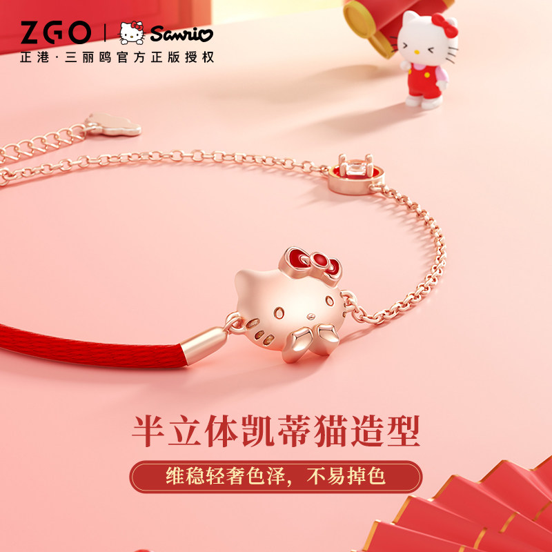 正港ZGOx HelloKitty纯银手链女生本命年红绳银饰三丽鸥生日礼物