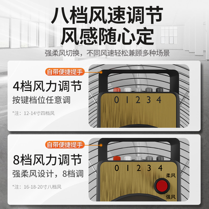 怒虎电风扇工业风扇强力电扇大风力家用落地扇坐地台扇台式趴地扇