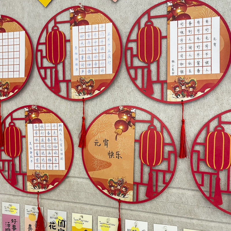 喜庆灯笼款元宵节剪纸2025元旦蛇年硬笔红色作品纸展示异形挂件班级书法教室布置装饰卡片小学生文化墙古诗纸