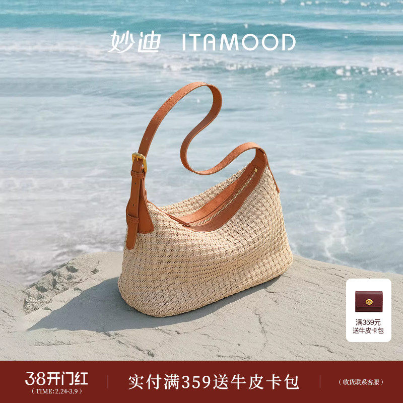 妙迪度假风2026春夏新款草编手提包小众时尚hobo单肩斜挎包包女生