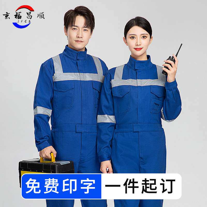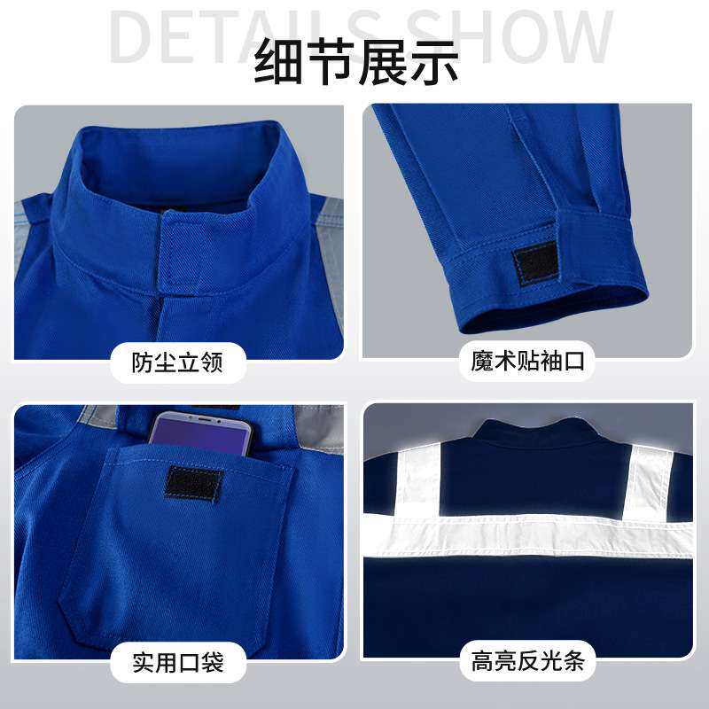 春秋连体反光条工作服套装男耐酸碱防护服阻燃加厚工装劳保服制服
