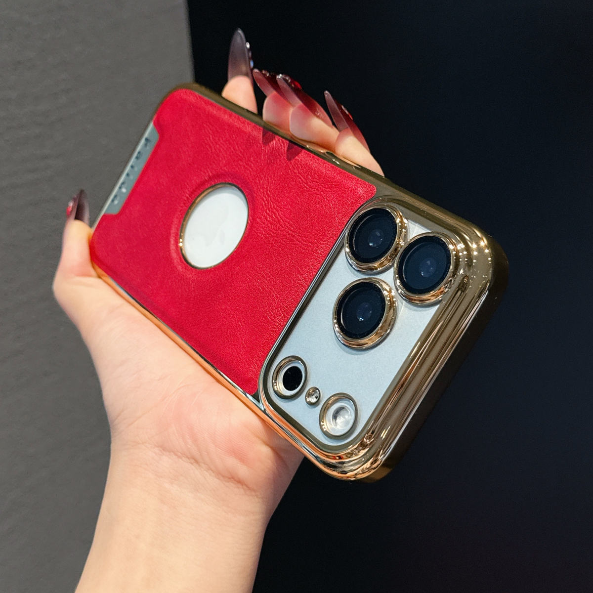 高级新年苹果17promax手机壳自带镜片膜皮质iPhone12/13pro/14新年款iPhone16promax新款全包防摔15素皮纹保