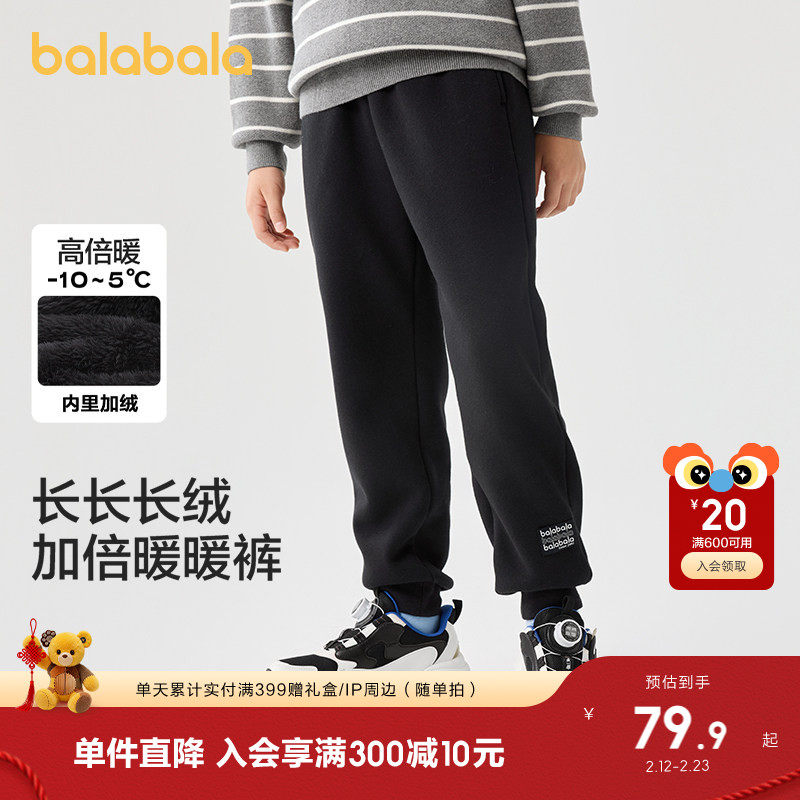 巴拉巴拉童装儿童加绒裤子男童女童2025冬装新款亲子休闲保暖长裤