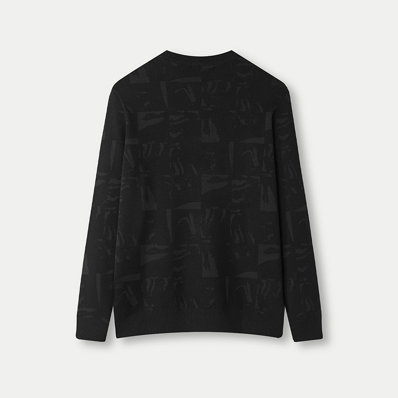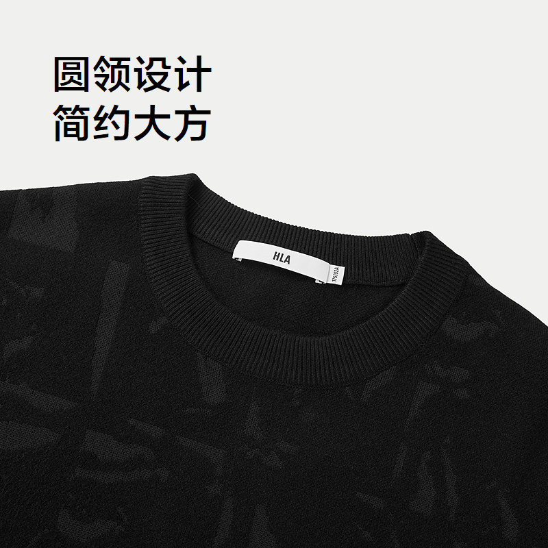 HLA/海澜之家休闲长袖针织衫2025秋冬新直筒圆领包芯纱提花毛衣男