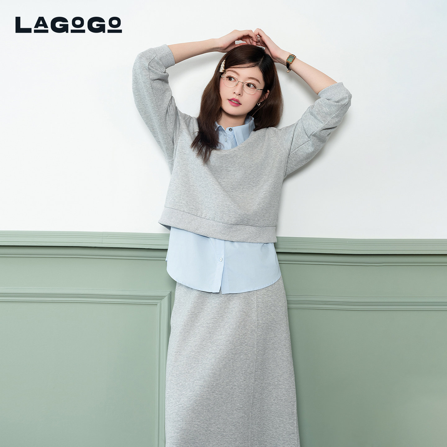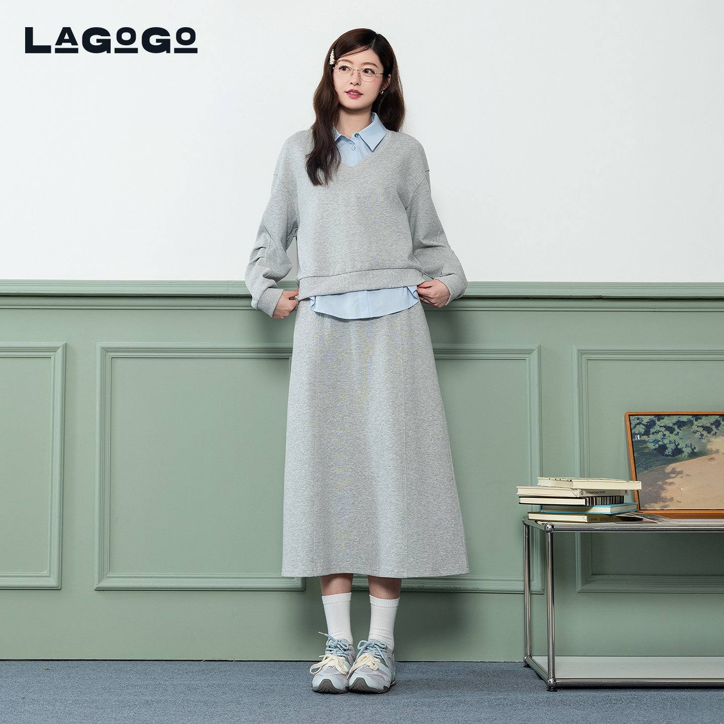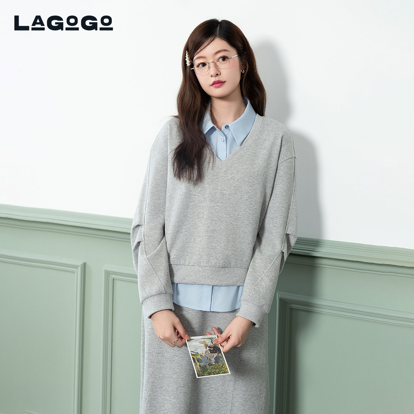 LAGOGO学院风半身裙三件套女拉谷谷2026春新款休闲套装PAUU332D22