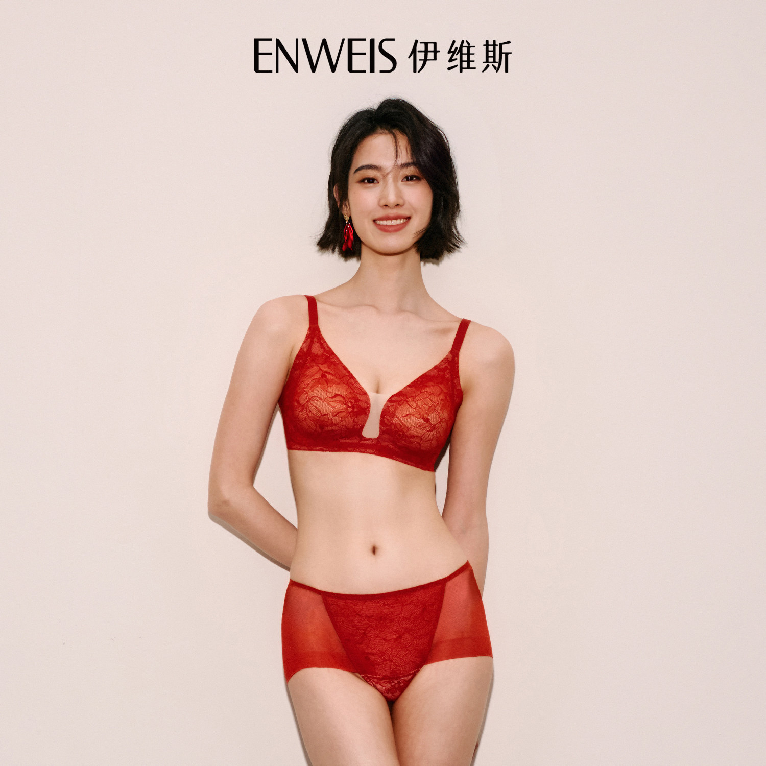【中女时代】伊维斯红色内衣内裤套装小胸聚拢文胸本命年新年吉服