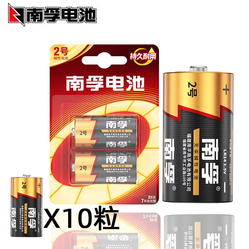 南孚二号电池C型LR14碱性2号适用于面包超人花洒摇椅费雪玩具收音机手电筒中号通3号三号1.5v干电池10粒-24粒