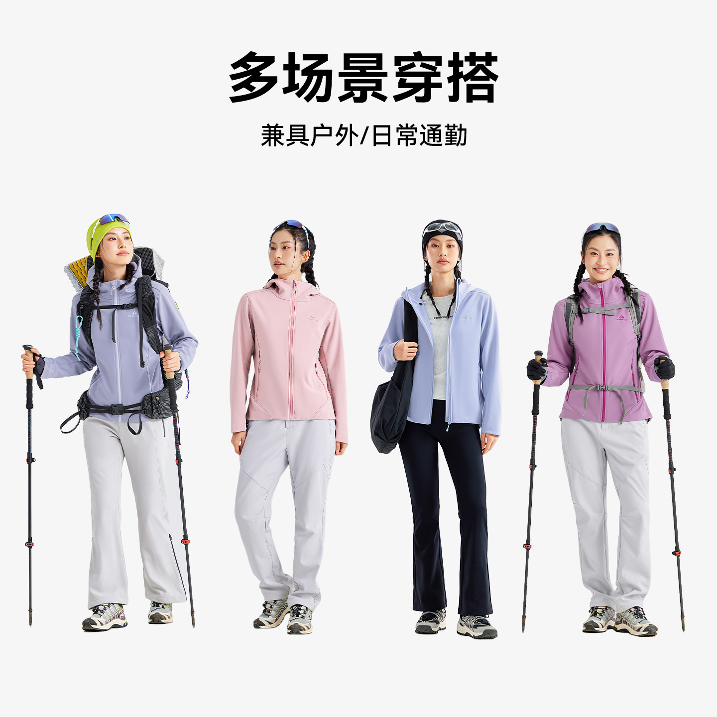【海豹加绒】拓路者户外软壳衣女款春秋连帽防泼水加绒保暖外套