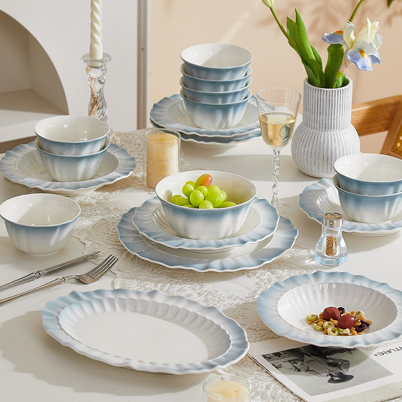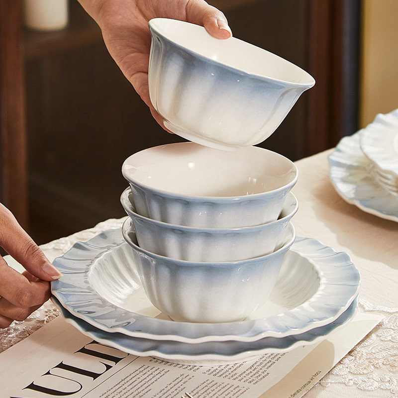 高级感陶瓷碗碟盘子家用2026新款碗盘釉下彩餐具菜盘饭碗餐盘组合