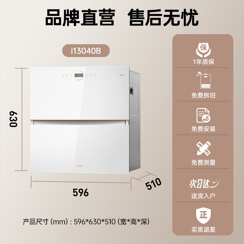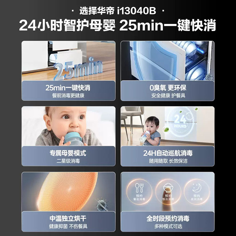 华帝消毒柜家用嵌入式新款厨房碗筷消毒烘干一体机i13040B白色