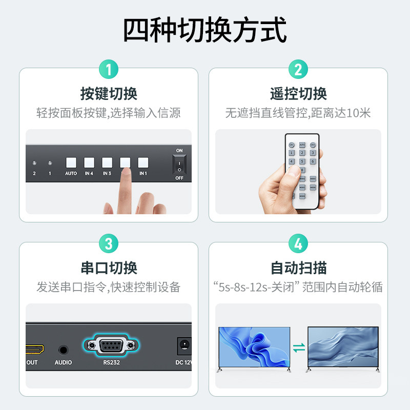 迈拓维矩 MT-HD0401W 无缝hdmi会议切换器带音频四进一出4口电脑屏幕显示器电视视频信号切屏器