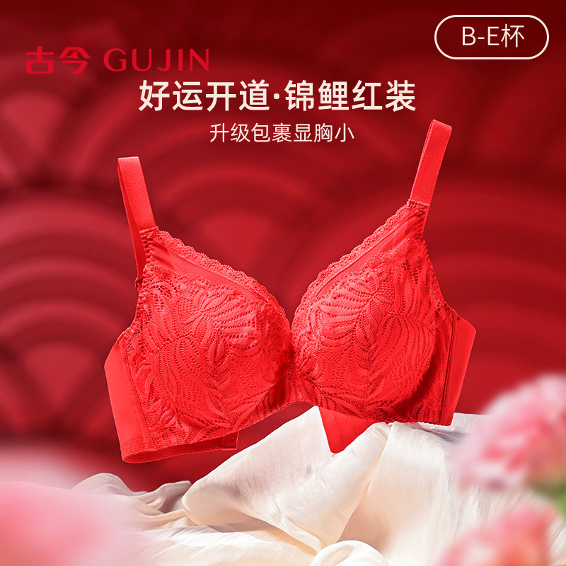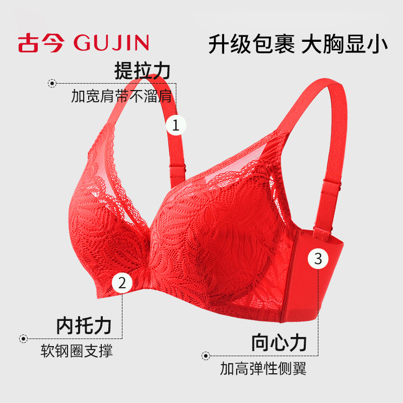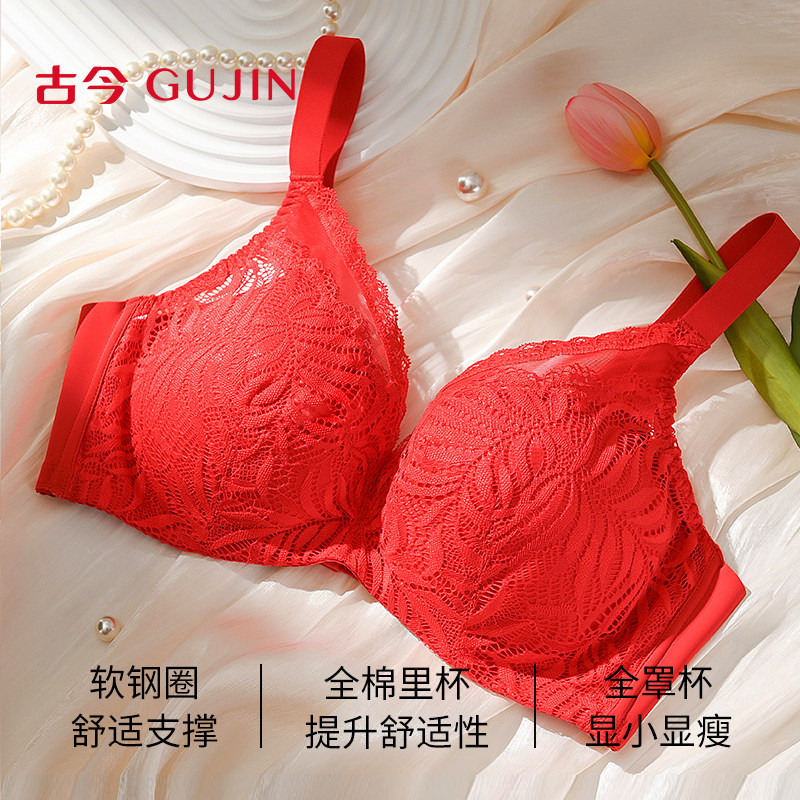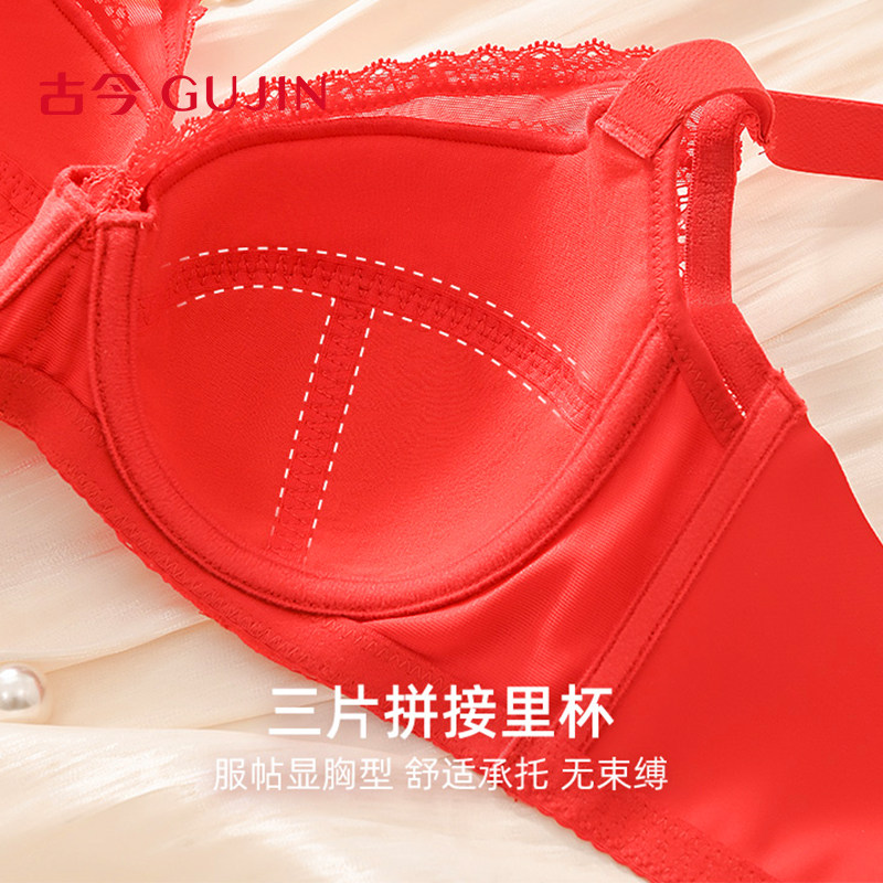 古今本命年红内衣女透气B-E杯大胸显小软钢圈棉内杯蕾丝文胸女