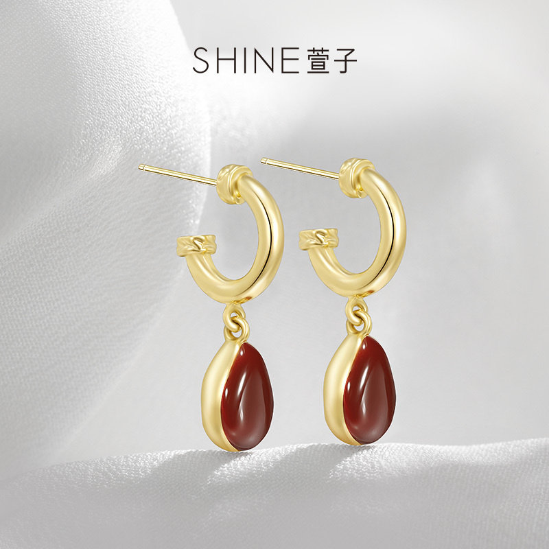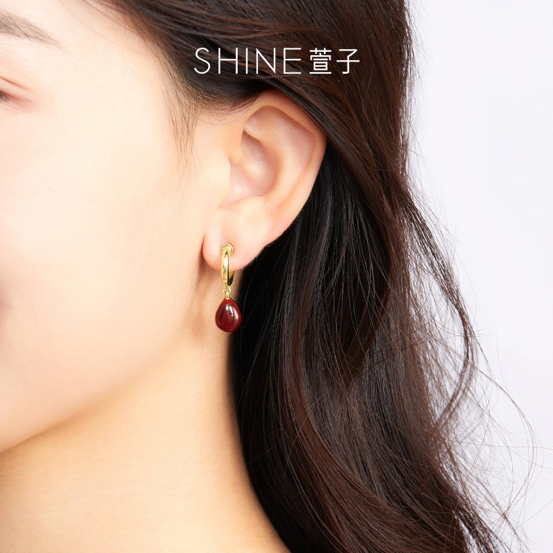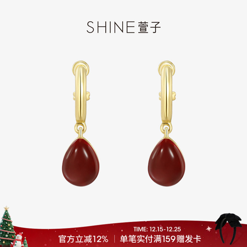 SHINE萱子饰品时尚耳环c圈酒红色滴釉耳坠女款生日礼物