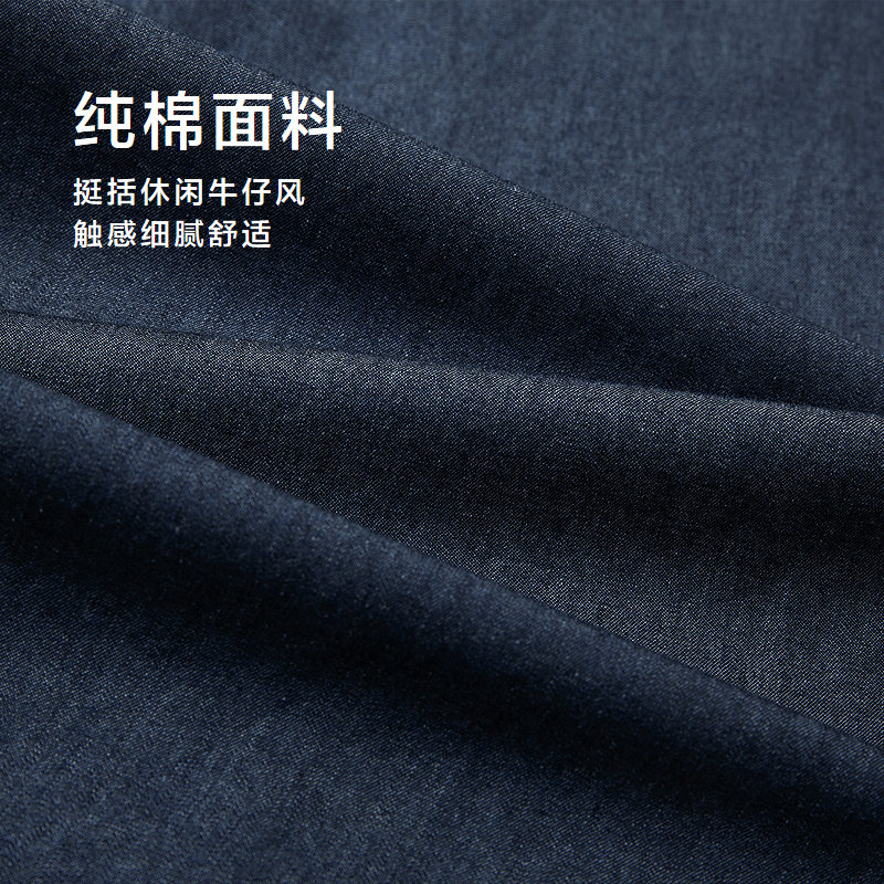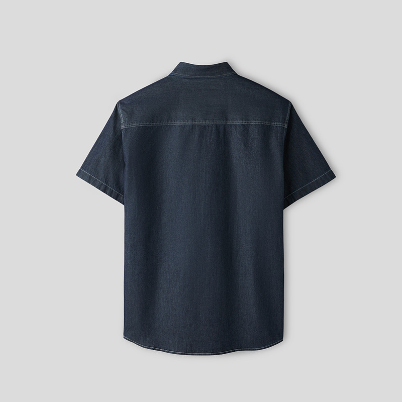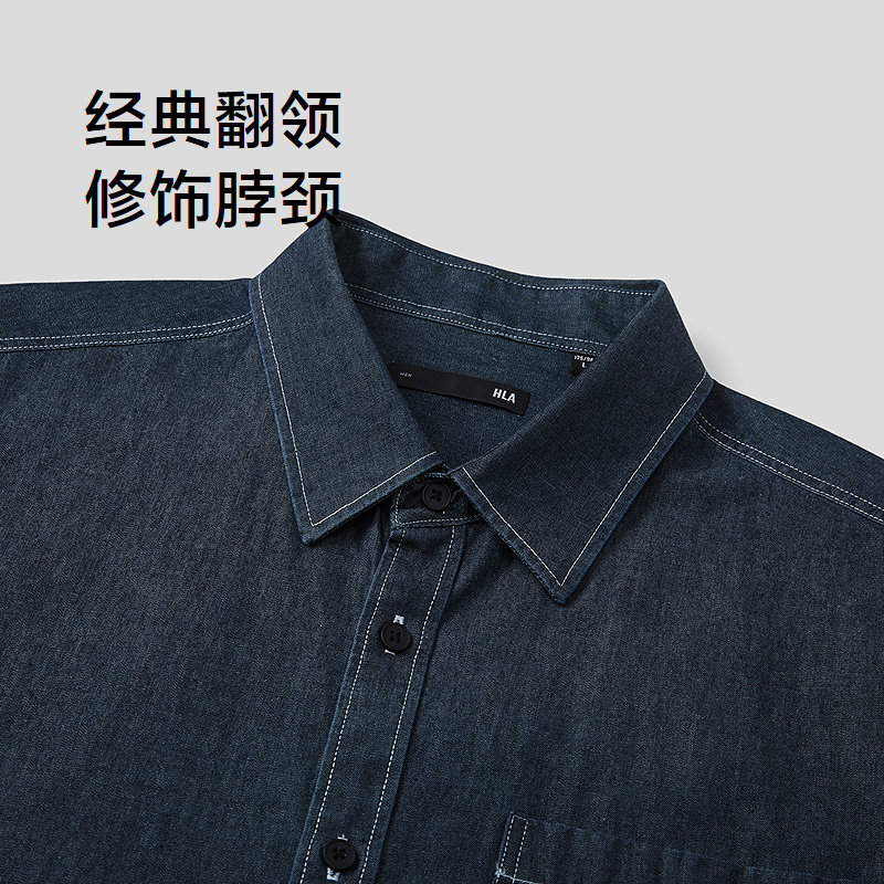 HLA/海澜之家山不在高纯棉短袖时尚衬衫26春夏新牛仔蓝外套衬衣男