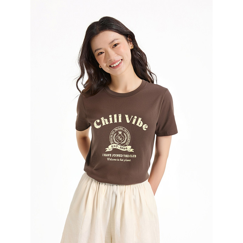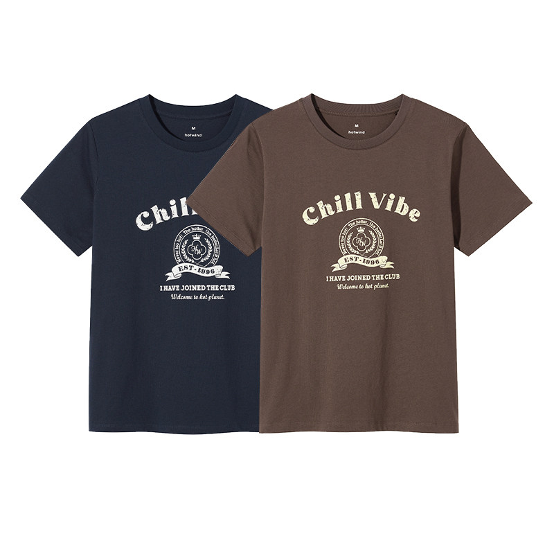 女士夏季短袖热风2025年新款女士复古大印花短T恤休闲经典上衣