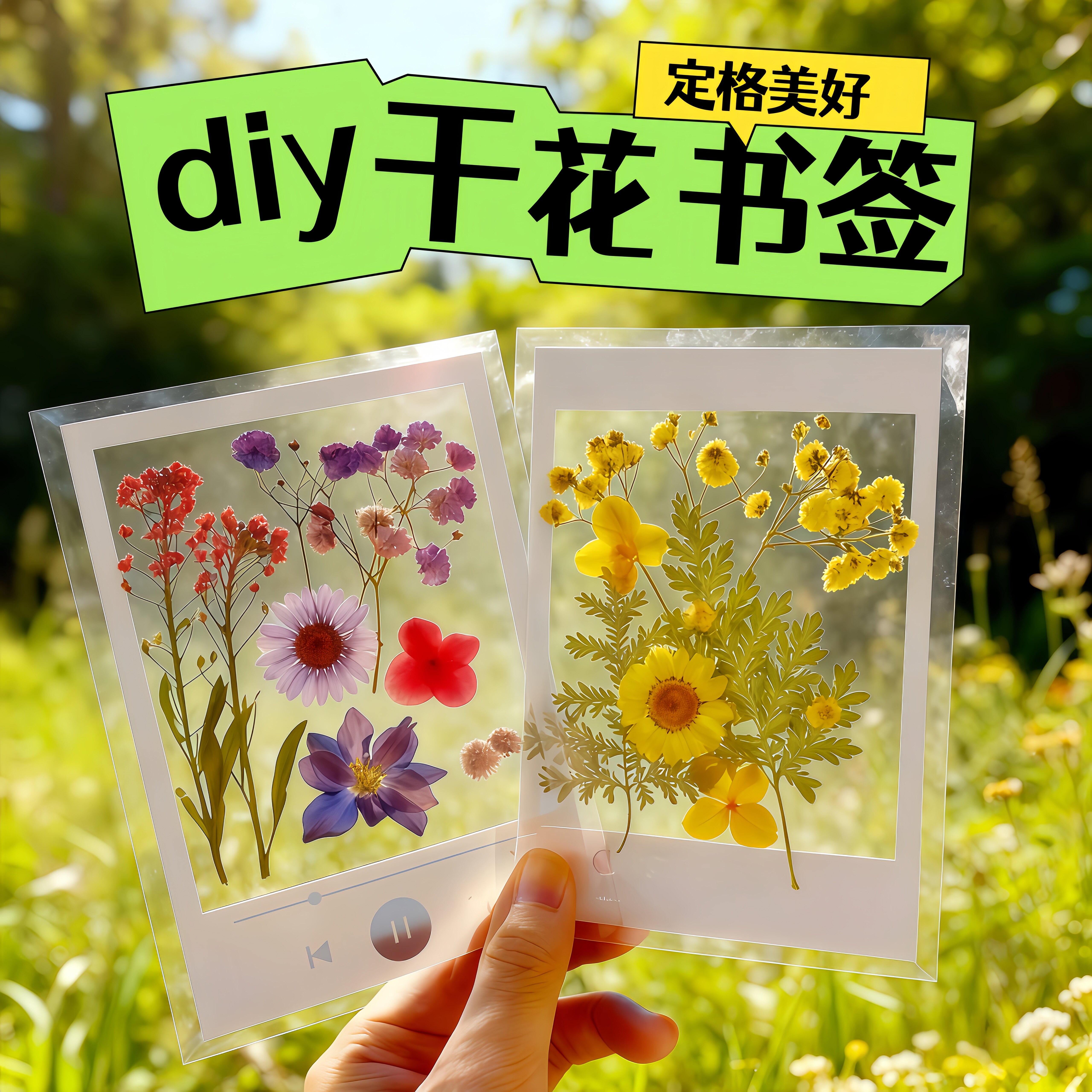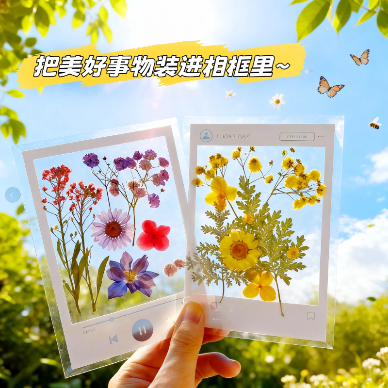 干花书签手工diy透明书签压花贴纸包学生标本夹贴植物标本夹贴