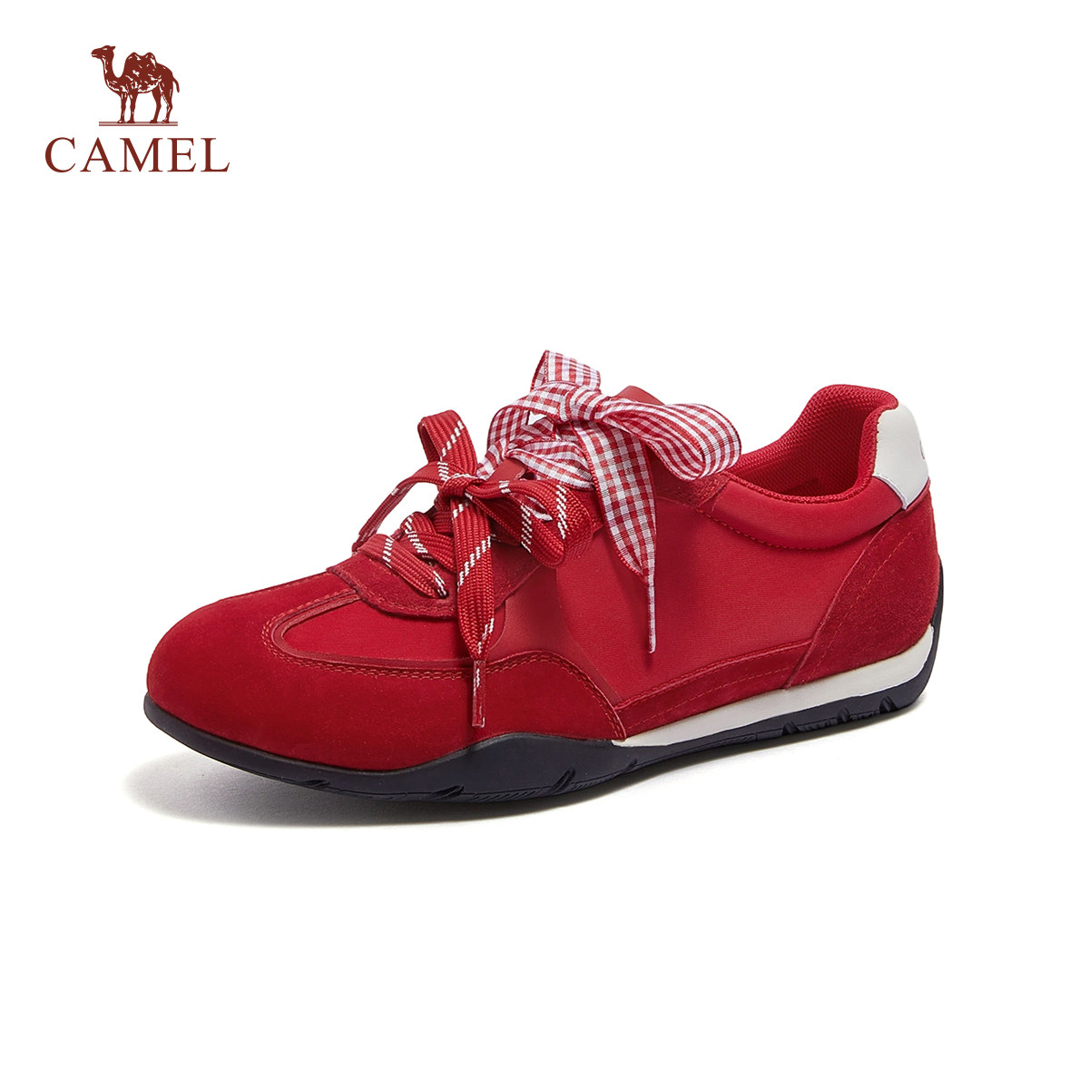 骆驼女鞋2026春季新款双鞋带红色板鞋休闲运动鞋阿甘鞋薄底德训鞋
