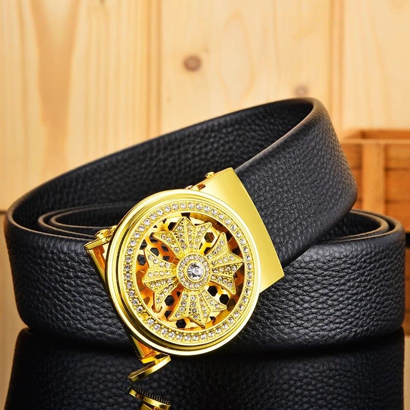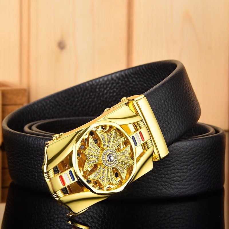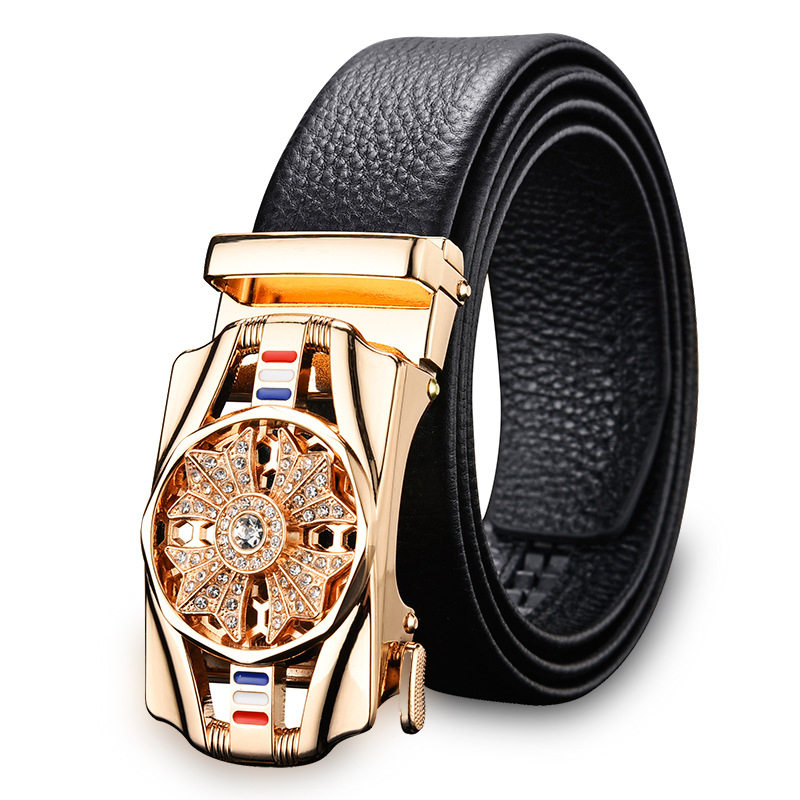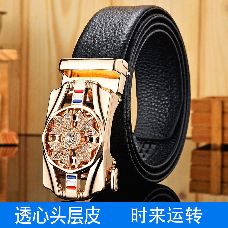 2025豹款男士自动扣皮带时来运转新款真皮头层纯牛皮腰带休闲裤带