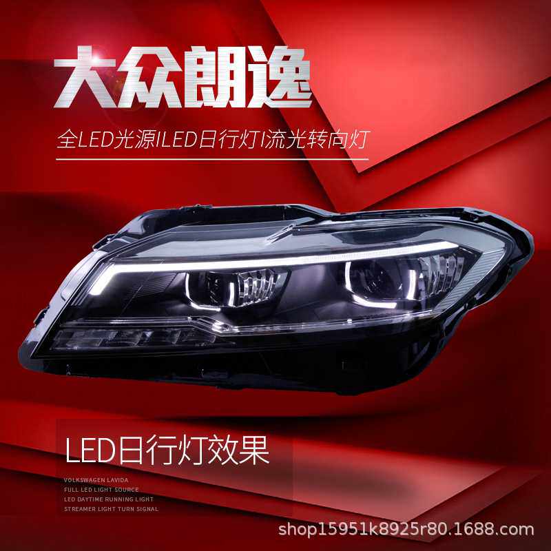适用于19款大众新朗逸PLUS大灯总成改装LED日行灯流光转向灯大灯