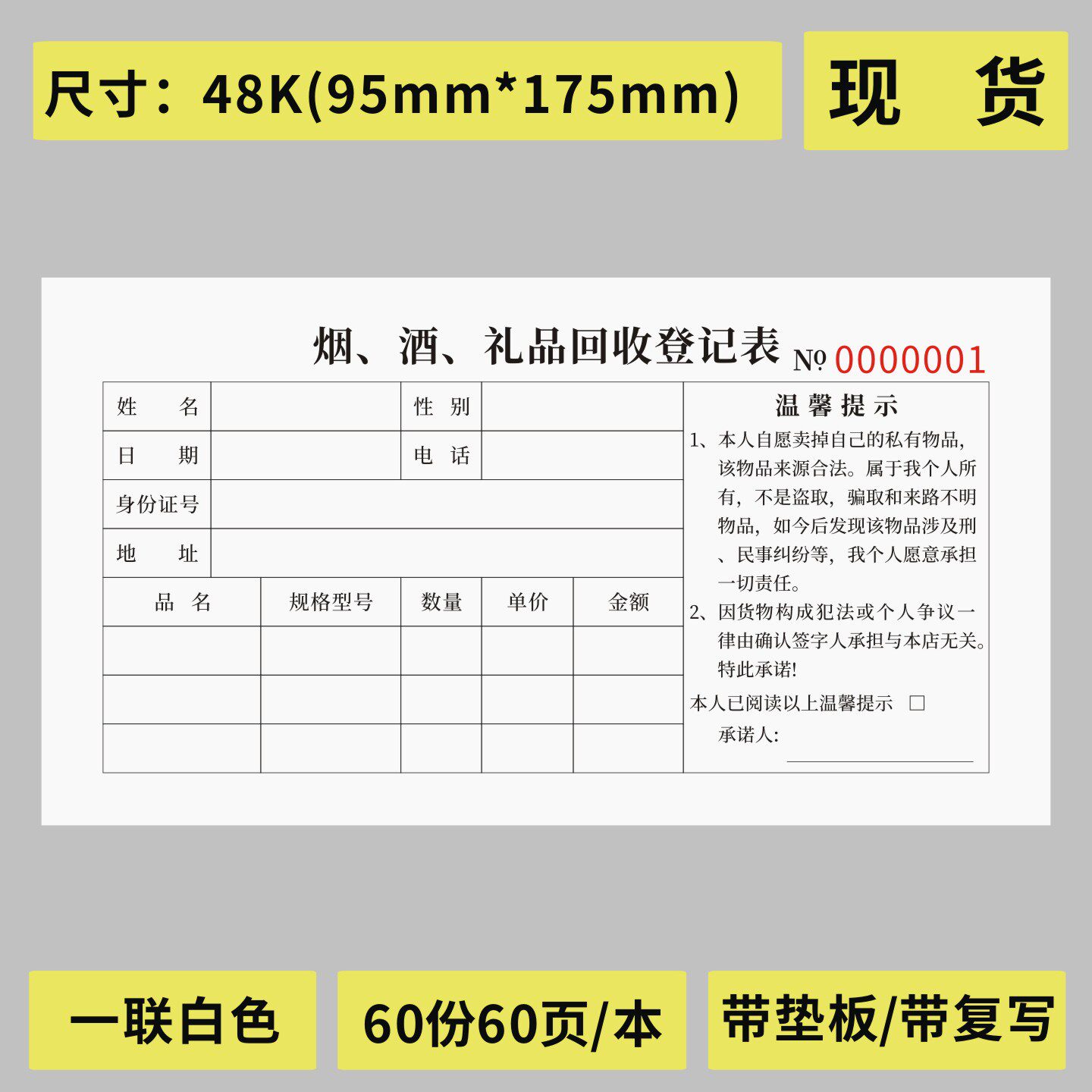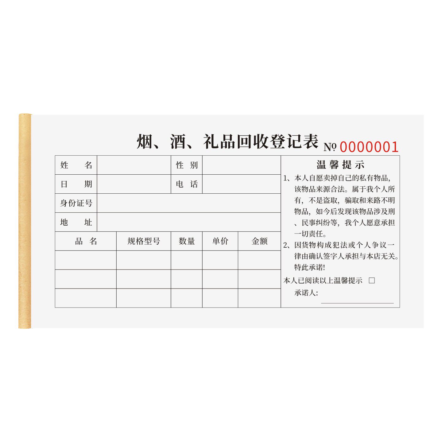 烟酒礼品回收登记表无碳复写商行寄卖白酒茅台燕窝虫草交易记录本