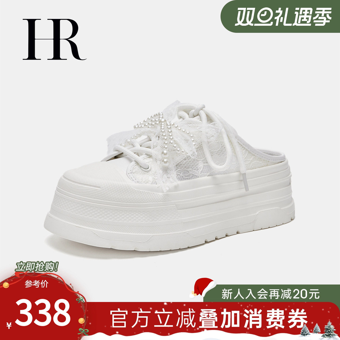 HR赫莲娜女鞋子2025夏季新款运动拖鞋厚底网面透气舒适懒人包头拖